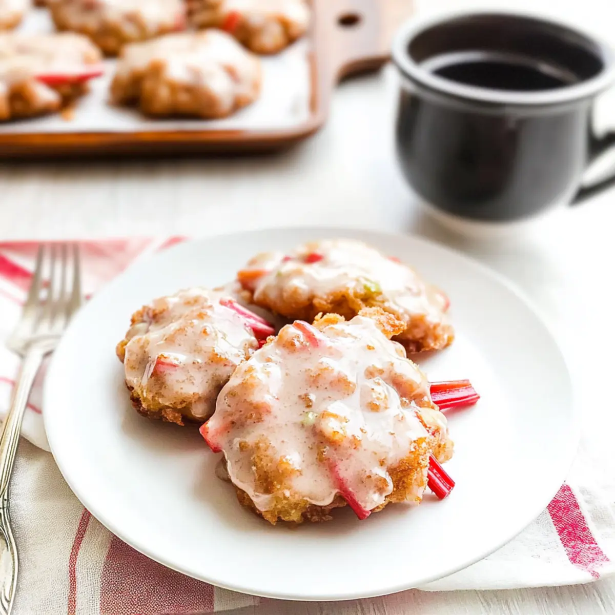 These Baked Rhubarb Fritters are perfect for busy home cooks looking to save time! You can prepare the fritter batter up to 24 hours in advance by mixing all the dry ingredients and combining them with the wet ingredients, then refrigerating the mixture. For the best results, fold in the chopped rhubarb just before baking to prevent it from becoming too mushy. Alternatively, you can bake the fritters and store them in an airtight container for up to 3 days. To enjoy them later, simply reheat in a 350°F (175°C) oven for about 10 minutes until warmed through and crispy. With these make-ahead options, you can savor delicious homemade Baked Rhubarb Fritters with minimal effort on busy mornings!