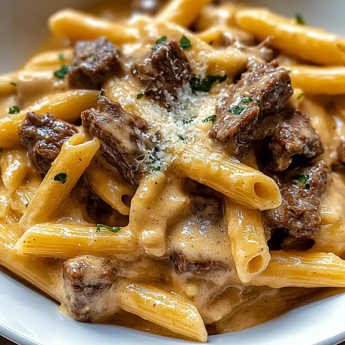 Beef Pasta in a Creamy Garlic Sauce for Cozy Weeknight Dinners