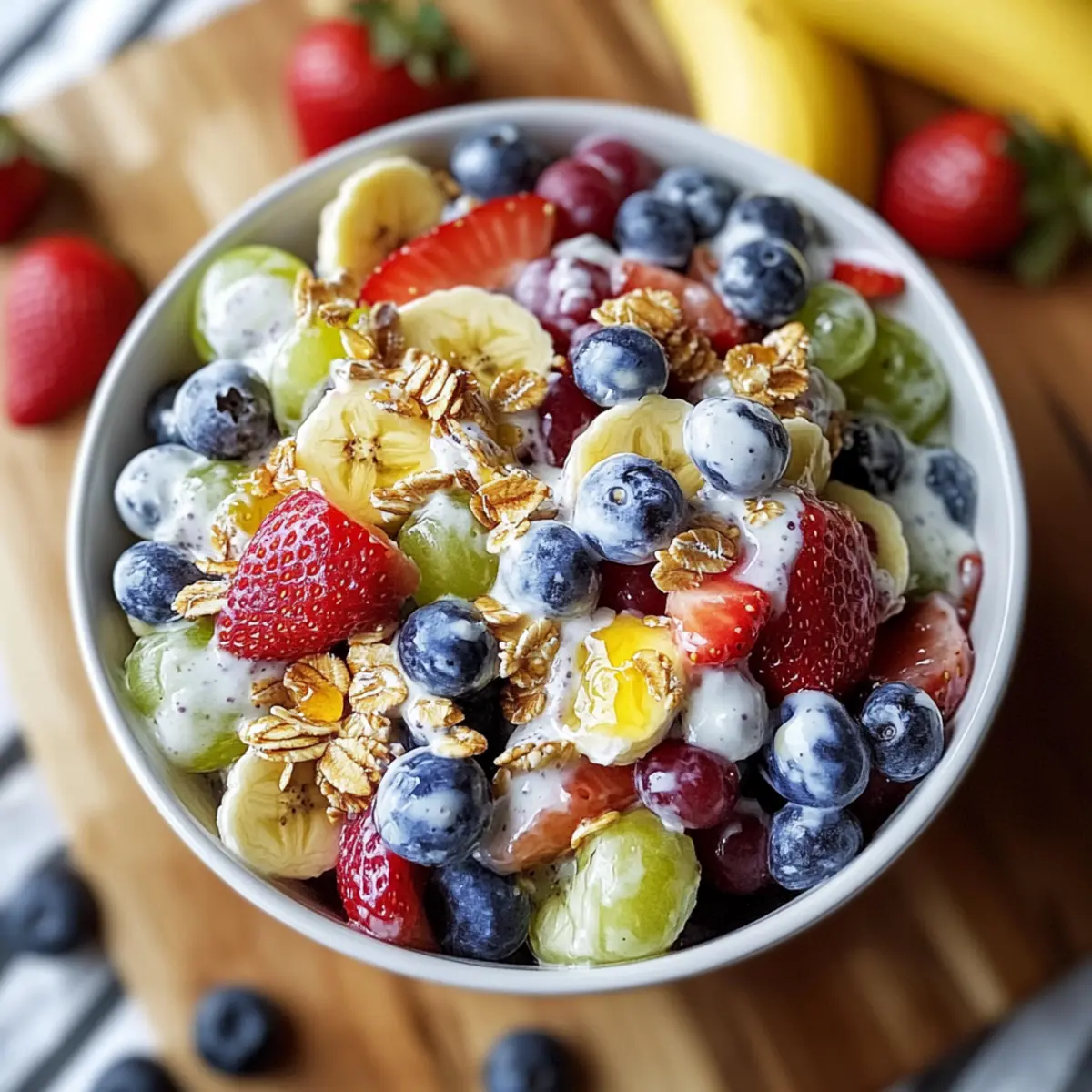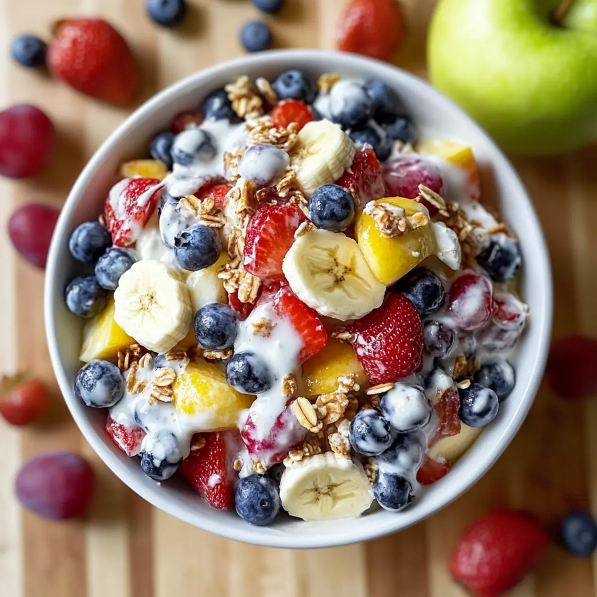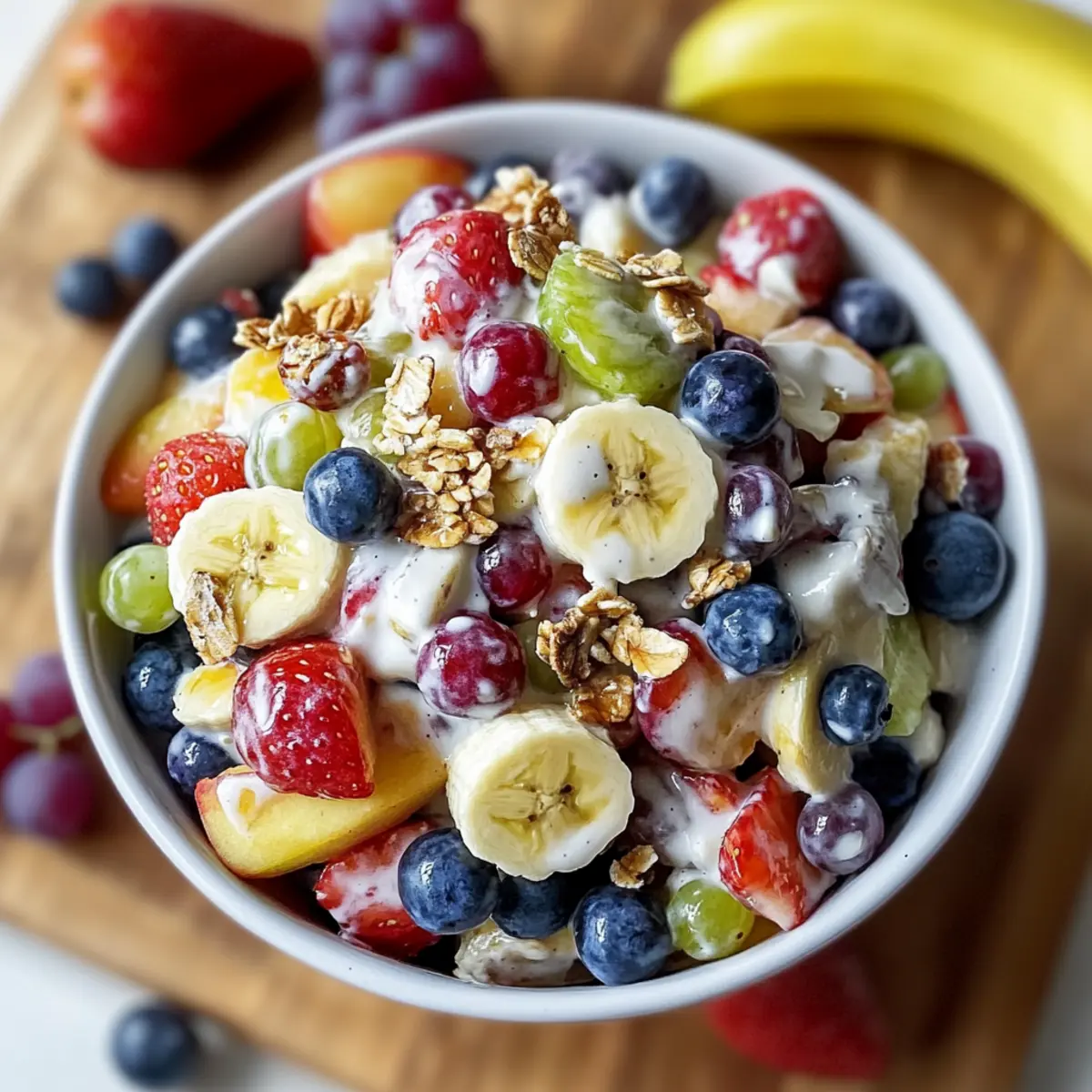 • Mix-in Options: Feel free to experiment with different fruits based on what’s available. Swapping in peaches or pineapple can bring exciting new flavors to your salad.