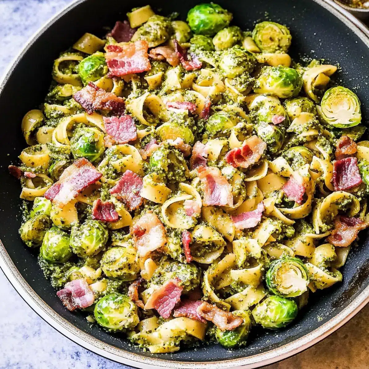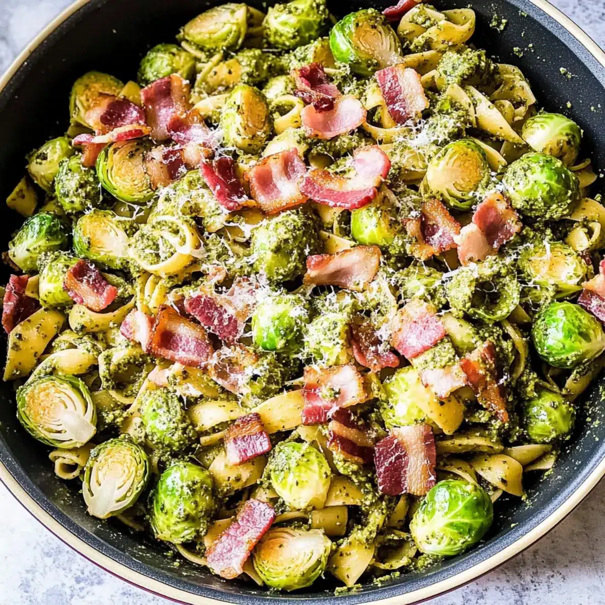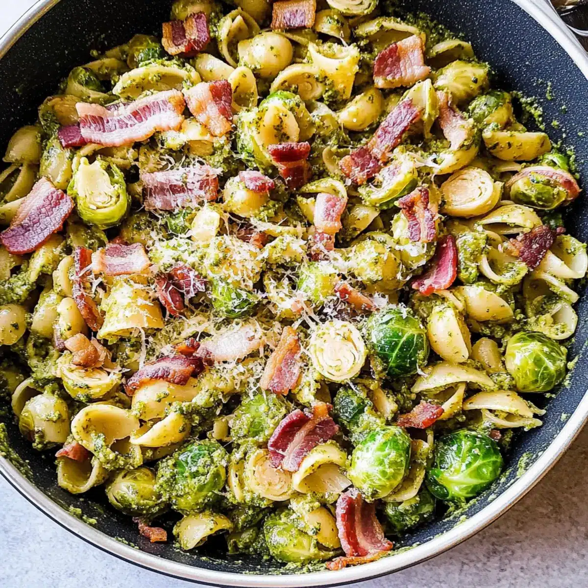 Gather these ingredients, and you’ll be well on your way to creating a delicious Brussels Sprouts and Bacon Pesto Pasta that everyone will love! Enjoy the cooking adventure!