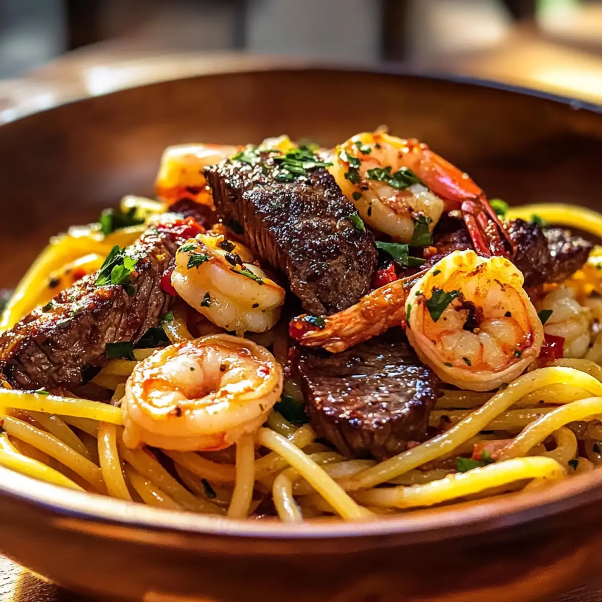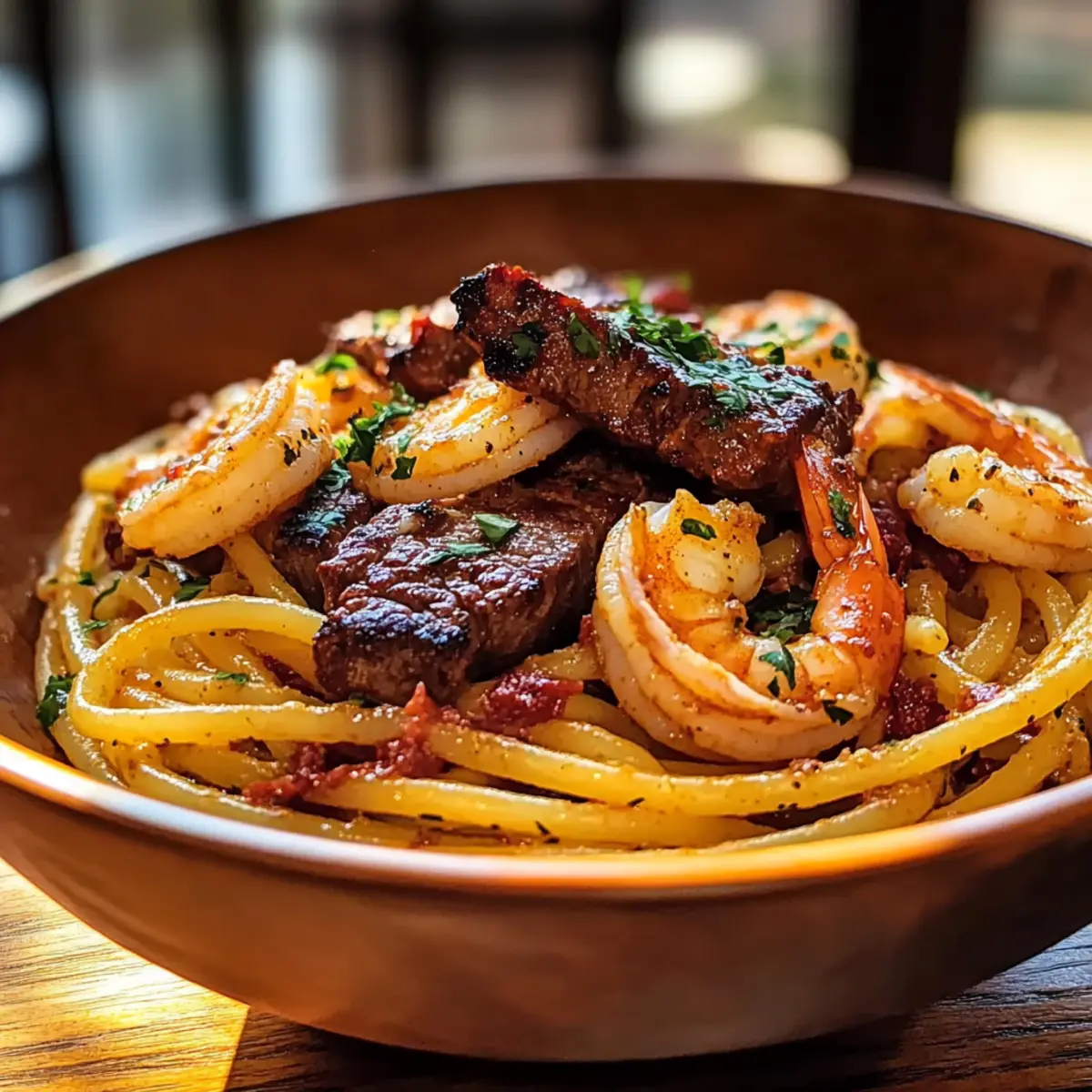 Calabrian Steak and Shrimp Bucatini: Bold Flavors Made Easy