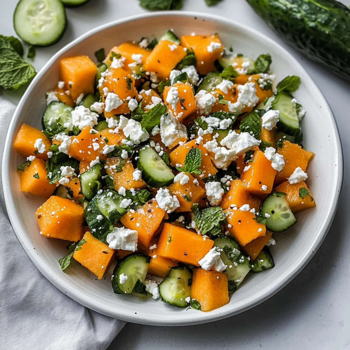 - Zucchini Substitute: Use shredded zucchini or thinly sliced zucchini in place of cucumber for a refreshing alternative that maintains a crisp texture. The sweet flavors of cantaloupe shine through with this addition.