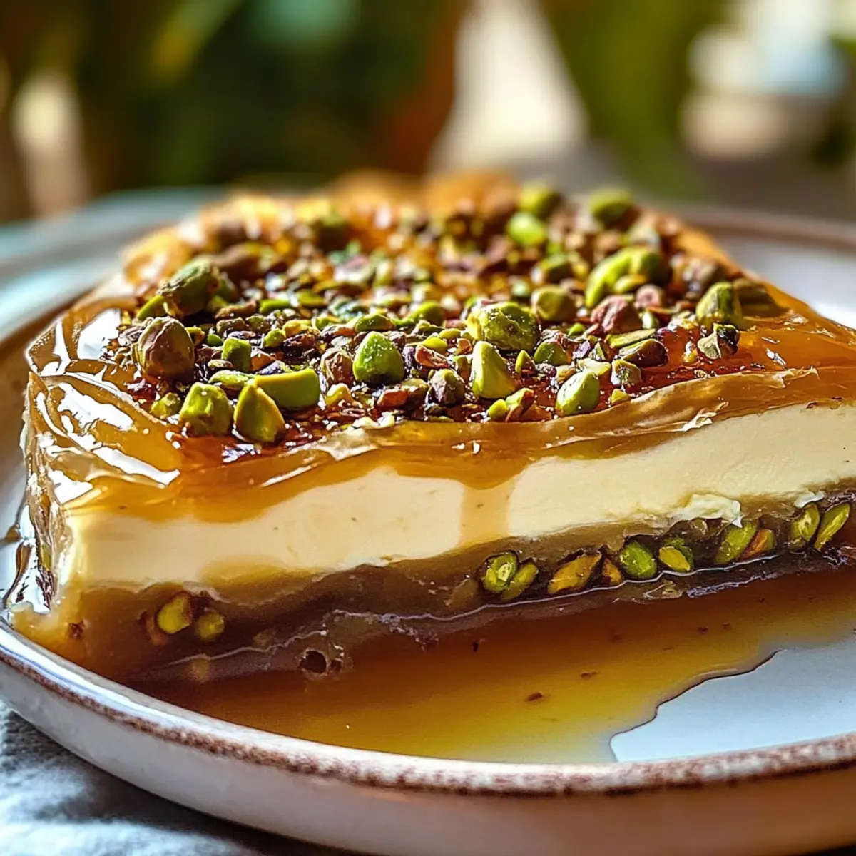 Indulge in Honey Pistachio Baklava Cheesecake Bliss