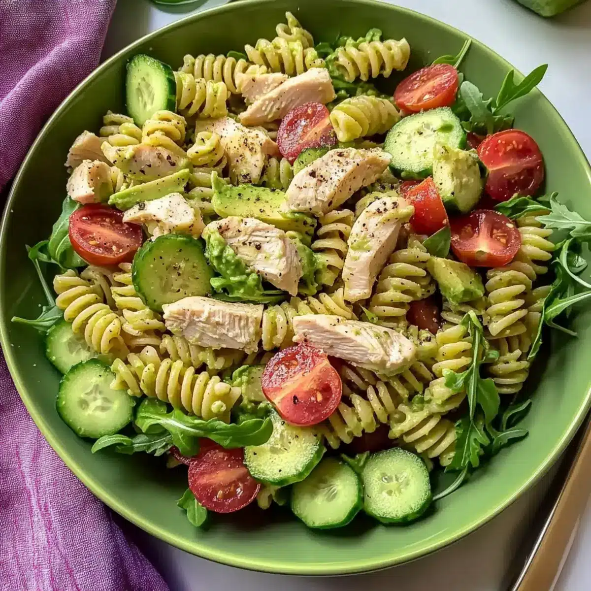 - Fresh Ingredients: Use ripe vegetables for the best flavor; fresh ingredients elevate your Chicken Avocado Pasta Salad significantly.