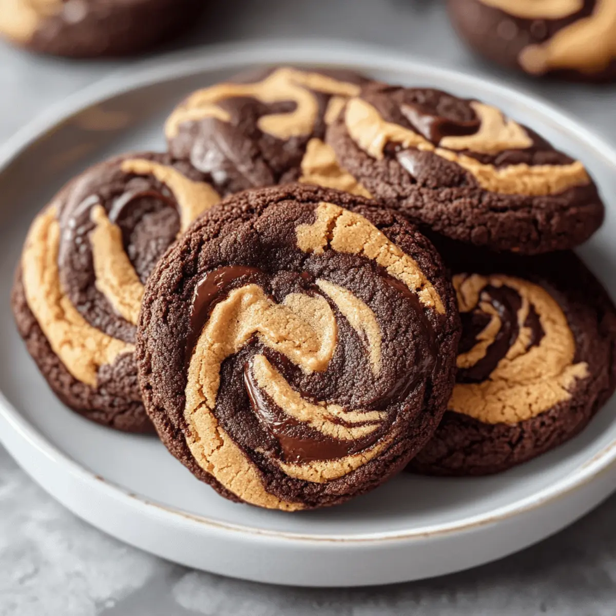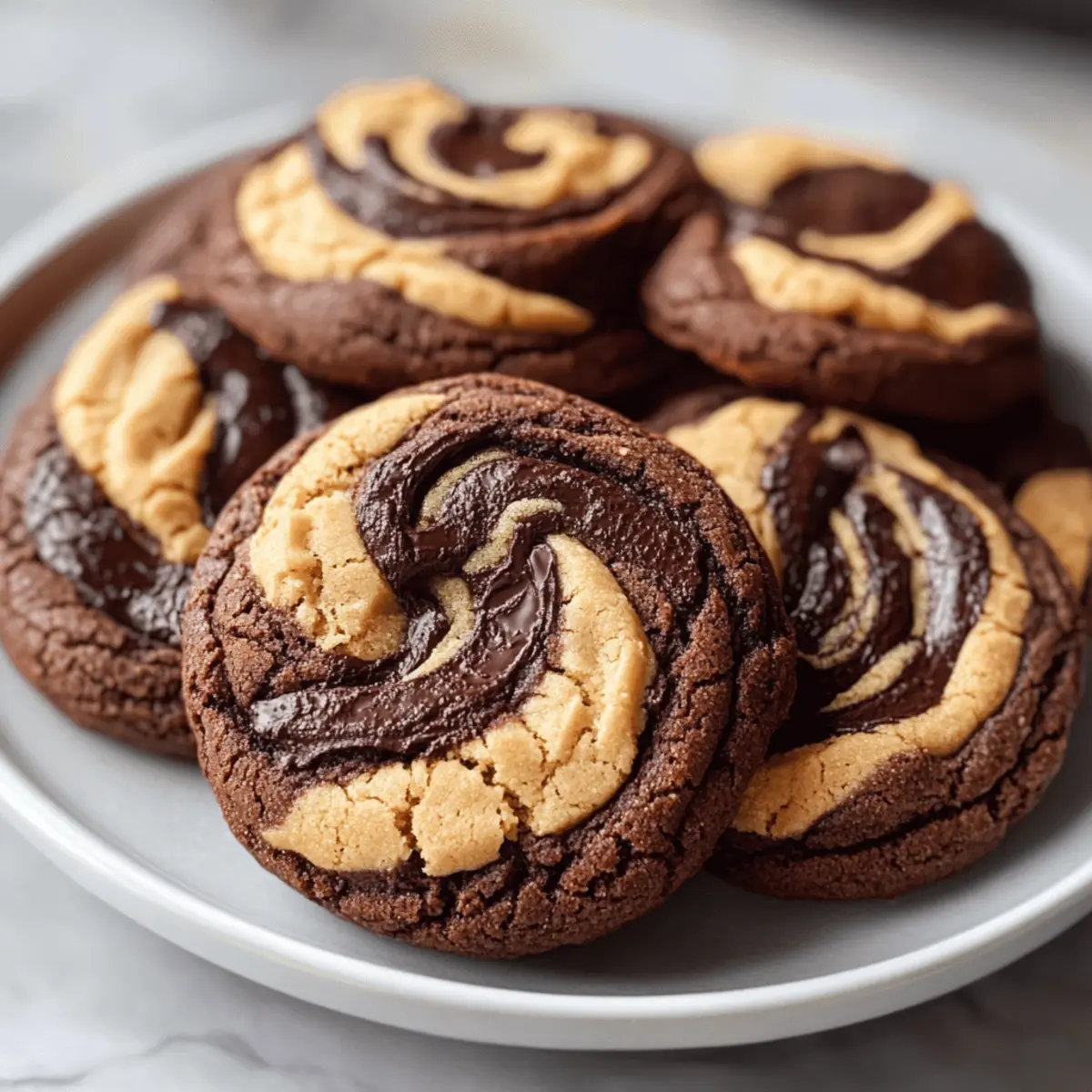 Consistent Sizing: Use a cookie scoop for uniform balls of dough. This ensures even baking and delightful, evenly-sized Chocolate Peanut Butter Swirl Cookies.