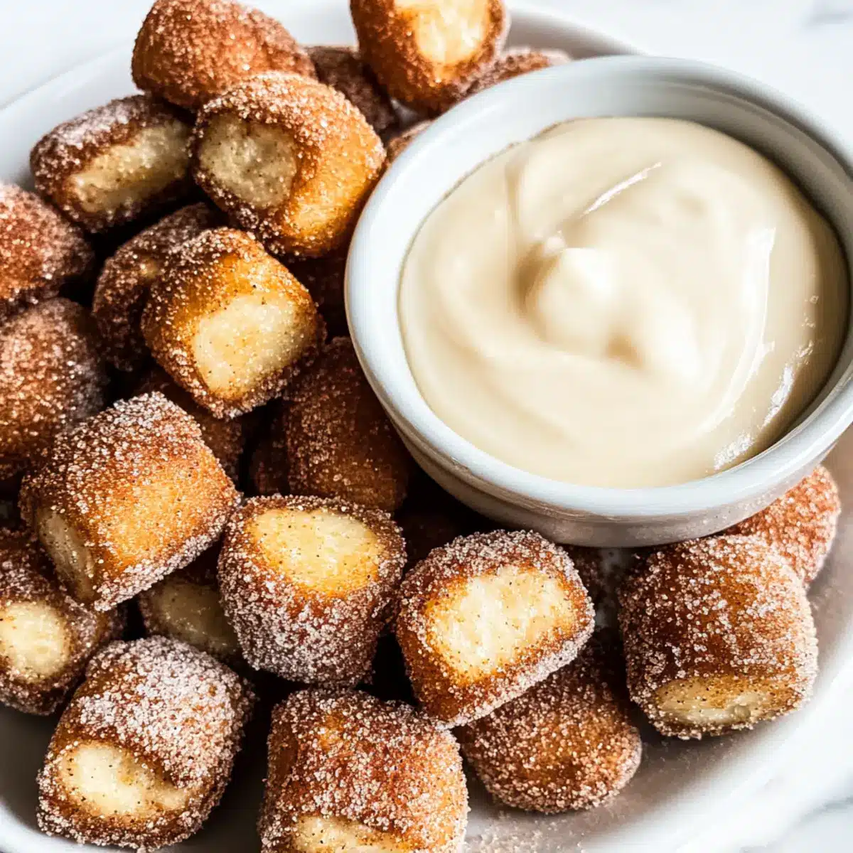 - Ice Cream Sundae: Serve with a scoop of vanilla ice cream for a delightful dessert experience. The warm, doughy bites with cold ice cream create a heavenly combination.