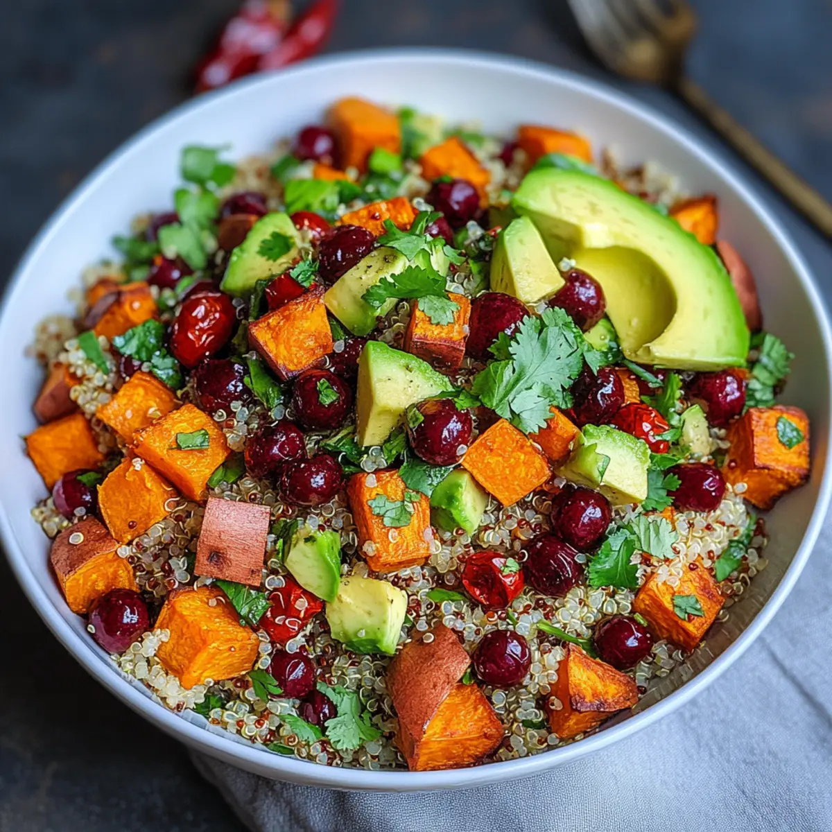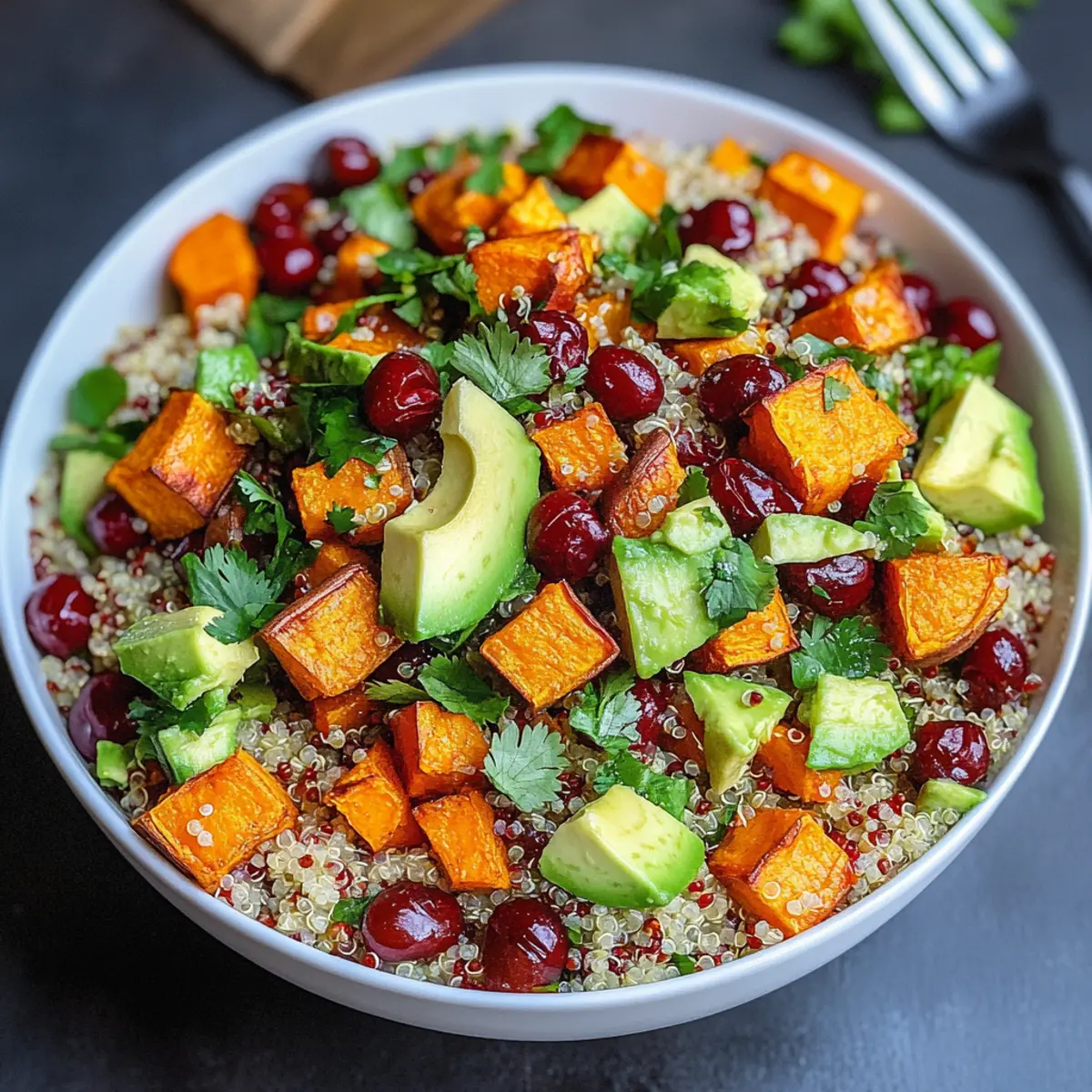 Vibrant Colors: The Colorful Roasted Sweet Potato Quinoa Salad is a feast for both the eyes and the palate, brightening up any meal.