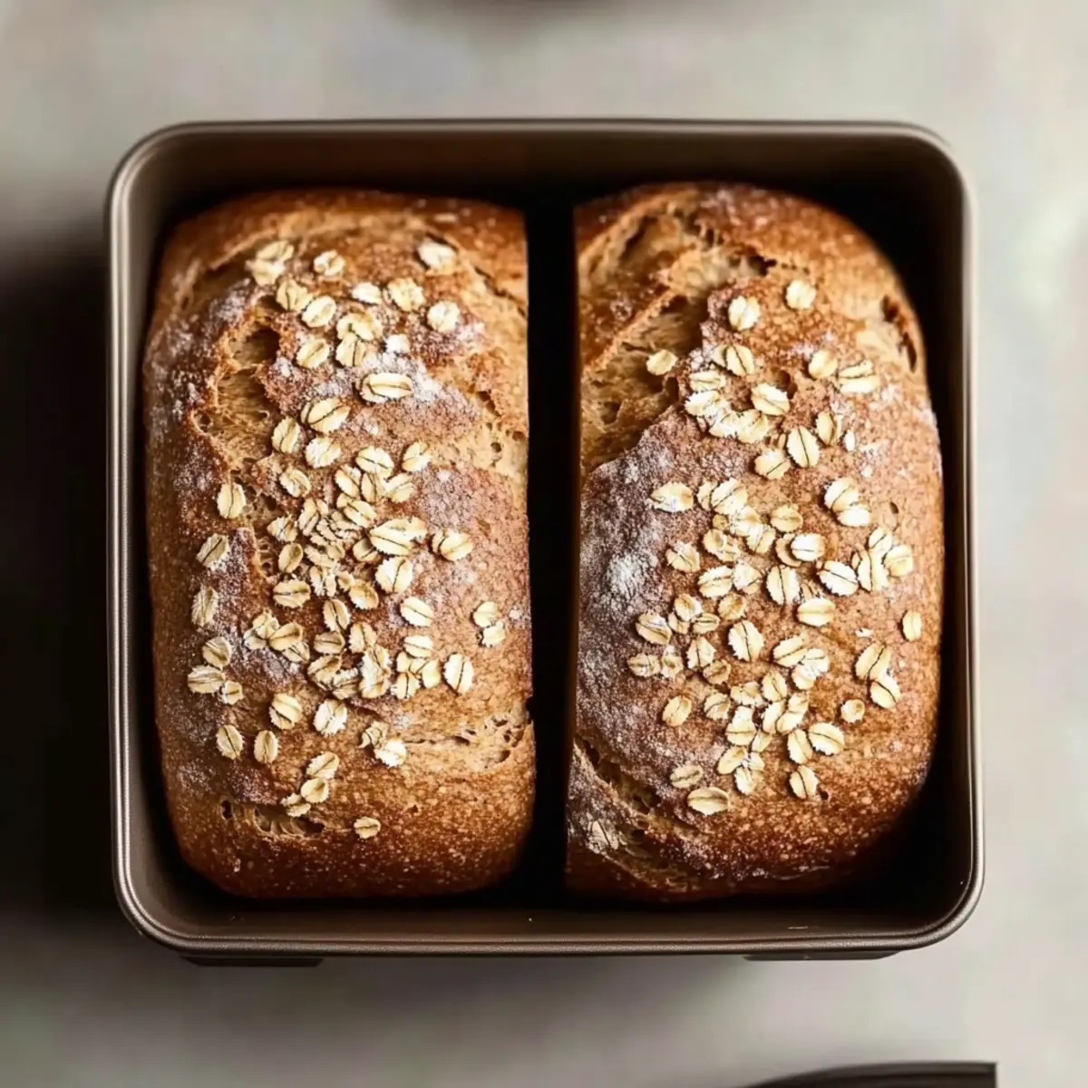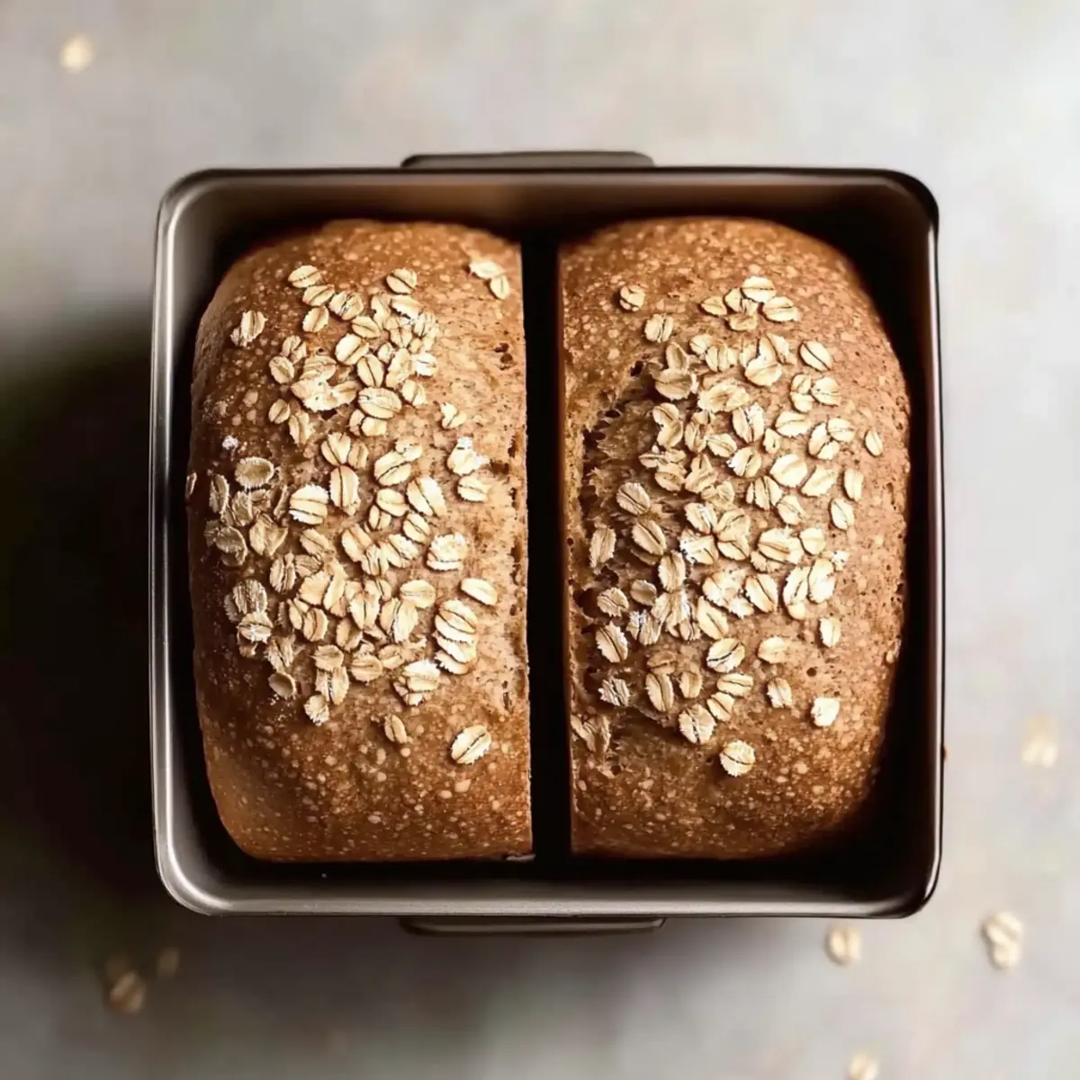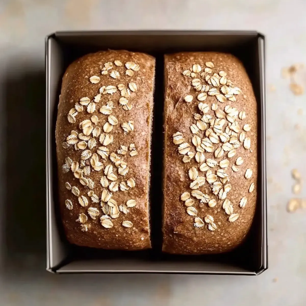 Once the dough has risen, gently punch it down to release excess air, and then divide it into two equal pieces. Shape each piece into a loaf, tucking the ends under to create a smooth surface. Sprinkle oats on top for added texture, resembling the restaurant’s signature style.