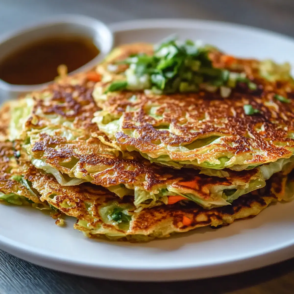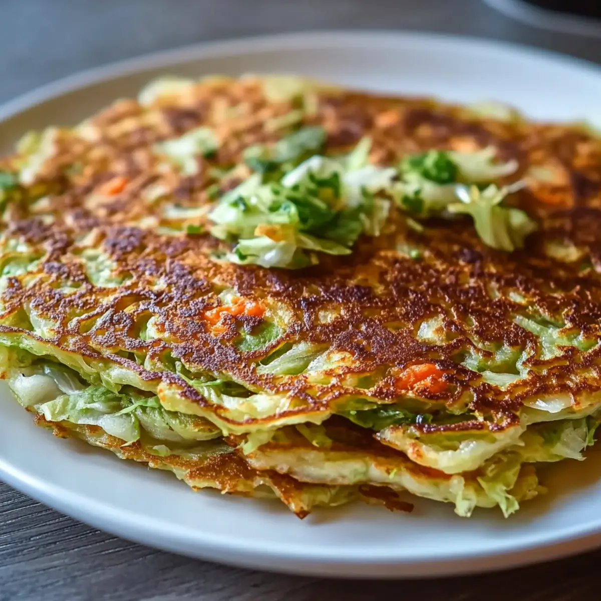 Slice your finished Crispy Cabbage Pancake into wedges and serve immediately. You can garnish with optional sauces or fresh herbs for an added touch. The enticing aroma and appealing texture will surely satisfy, making each bite a delicious experience for you and your loved ones.