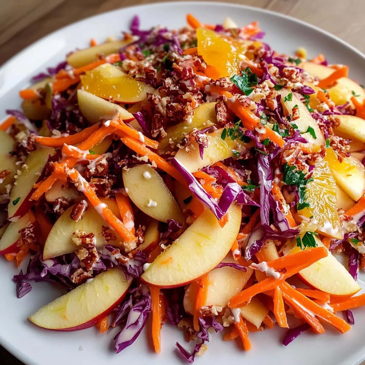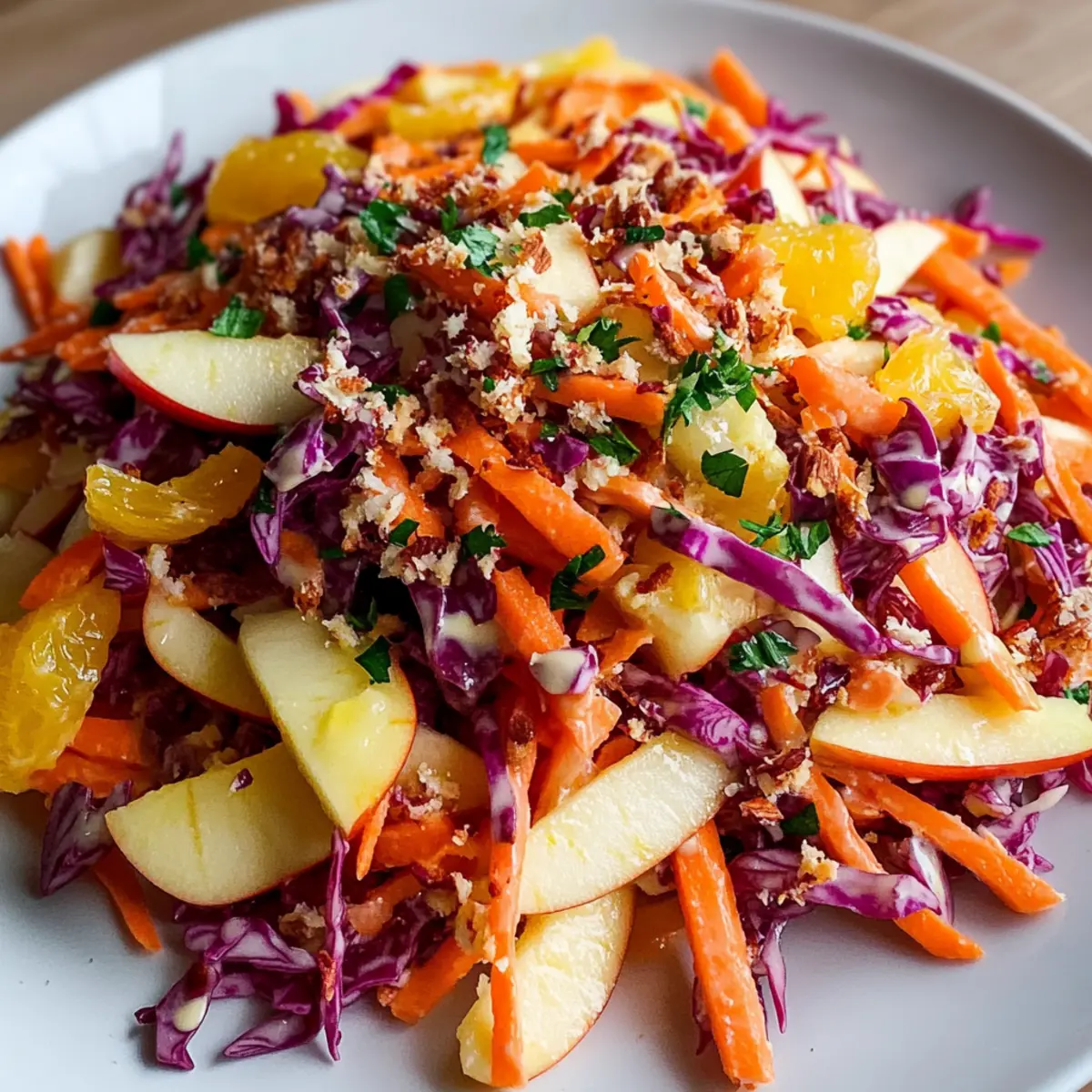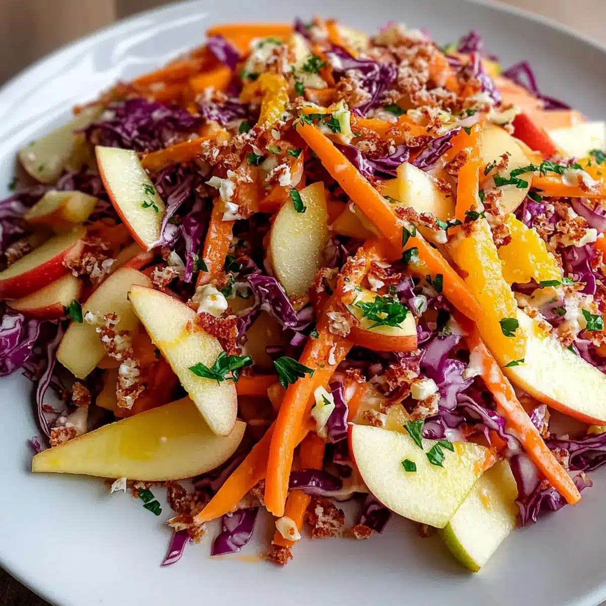 This Crunchy Apple Carrot Salad with Creamy Citrus Dressing is a fantastic choice for busy home cooks who appreciate meal prep! You can grate the carrots, chop the apples, and shred the red cabbage up to 24 hours in advance—just store them in an airtight container in the refrigerator to keep them fresh and prevent browning. Additionally, the dressing can be prepared ahead of time and refrigerated for up to 3 days. When you’re ready to serve, simply combine the prepped vegetables and drizzle the creamy dressing on top, giving everything a gentle toss. This way, you’ll have a vibrant, delicious salad ready to enjoy with minimal effort!