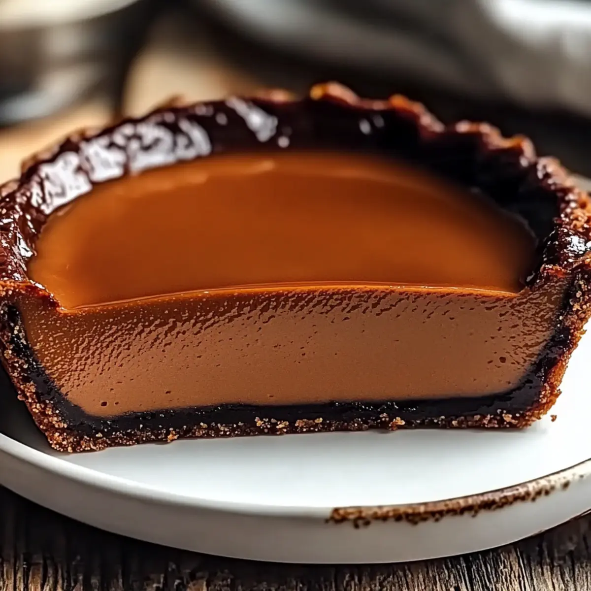 Indulgent Flavor: Each bite of this flan transports you to a Parisian café, with its rich chocolate custard that balances perfectly with a crisp tart base.