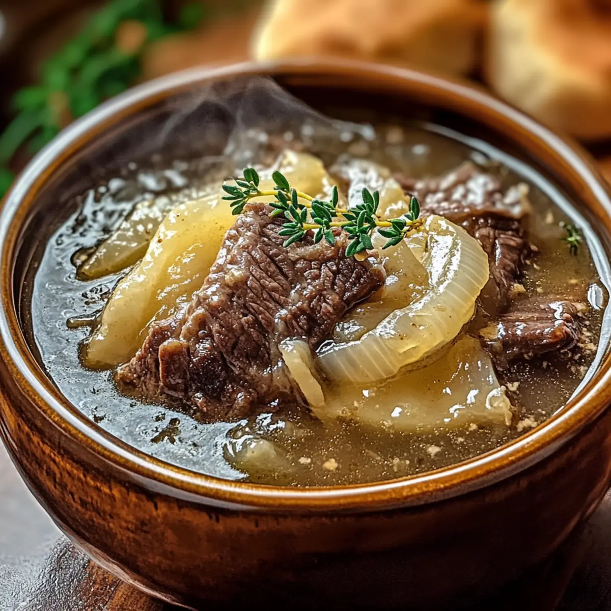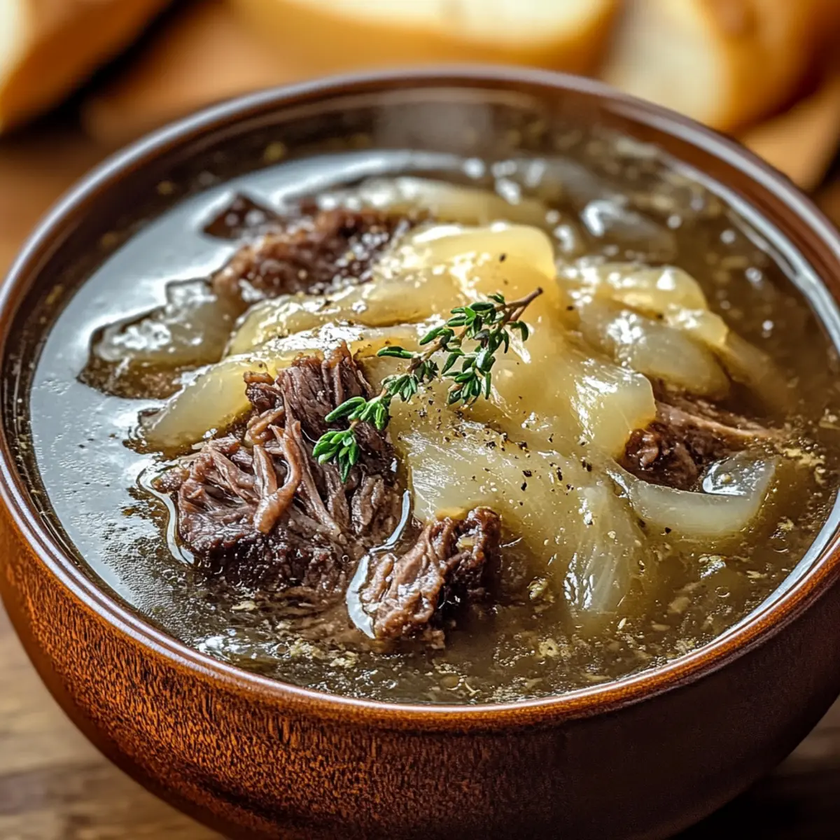 Cheesy Indulgence: Top your soup with gooey Gruyère or Swiss cheese right before serving. The melted goodness creates a delightful contrast with the rich broth.