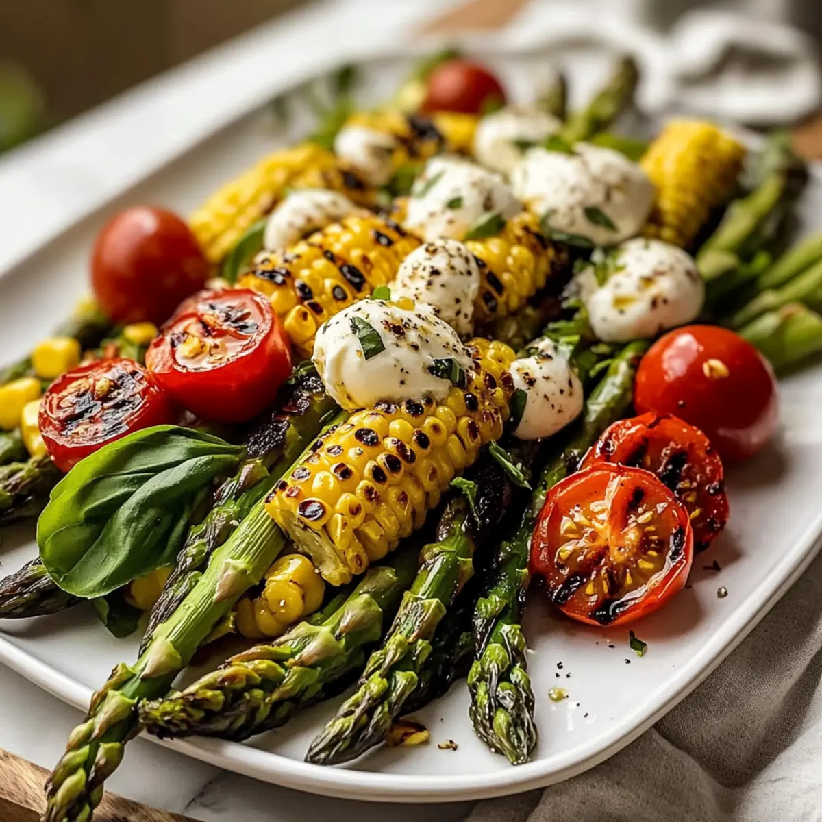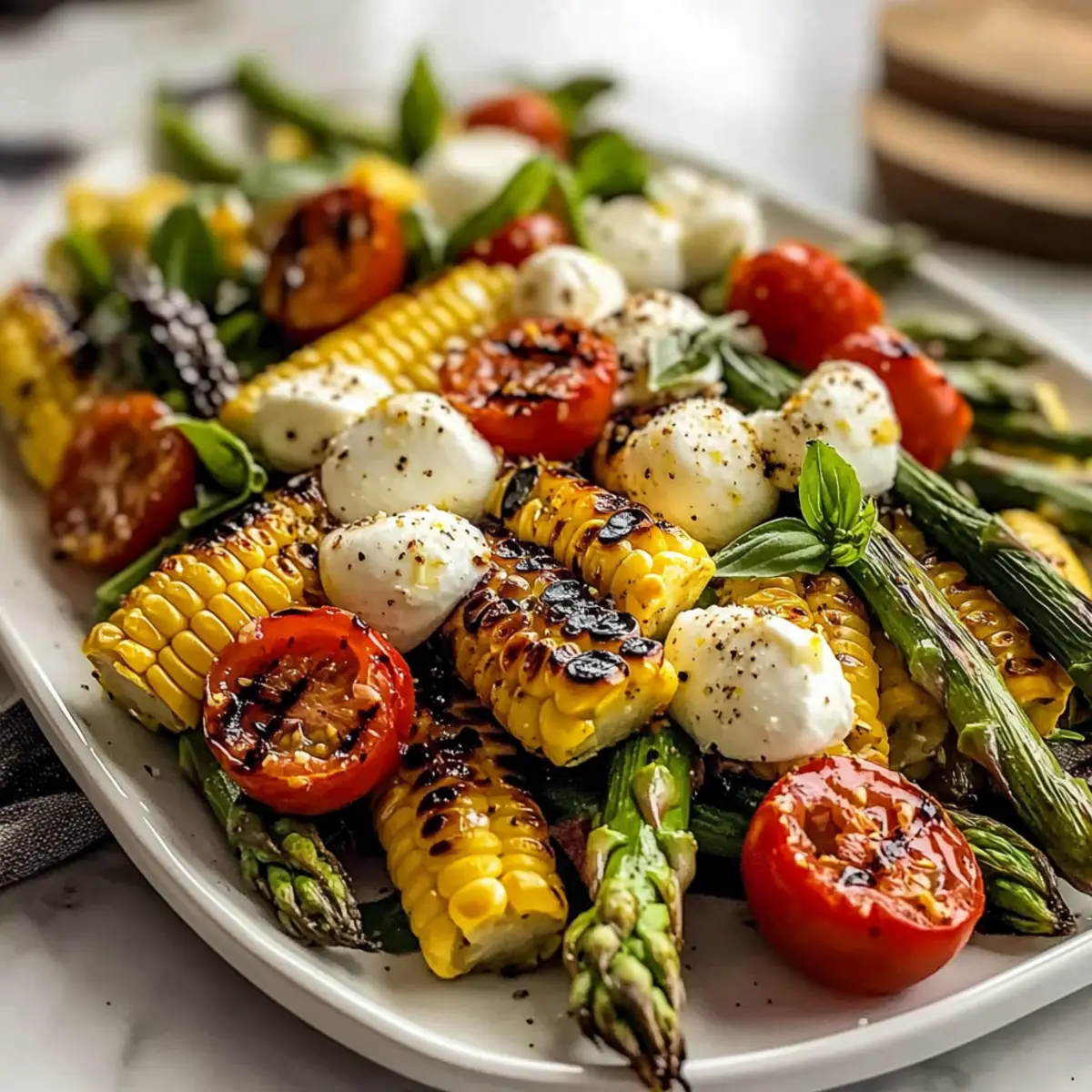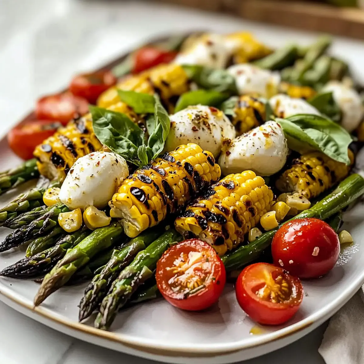 Mix Ingredients Wisely: Allow grilled vegetables to cool slightly before mixing to prevent wilting the basil and melting the mozzarella in the grilled asparagus and corn salad.