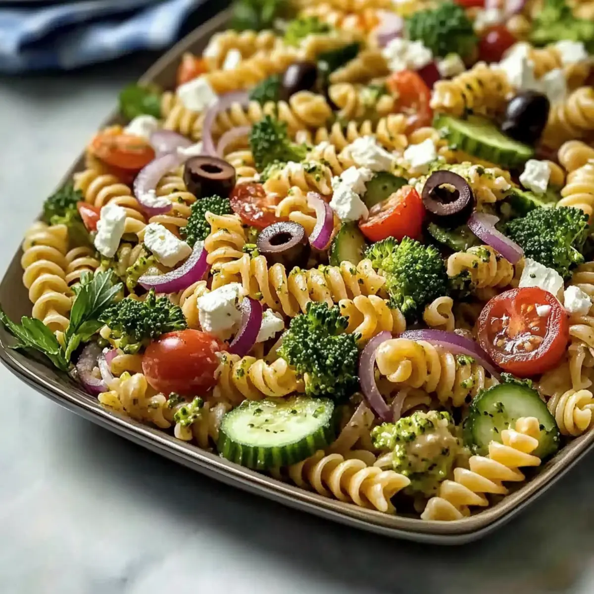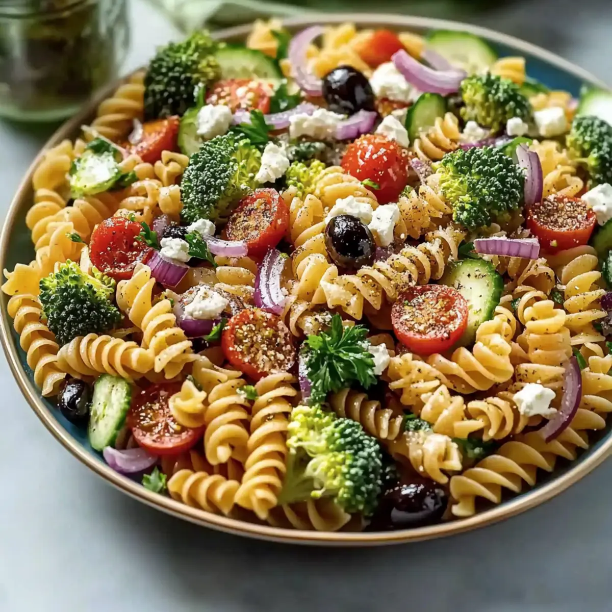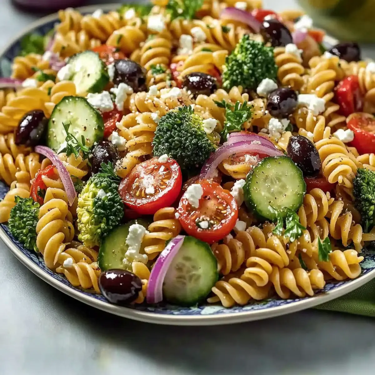 Very good question! If you’re making this salad for someone with allergies or special dietary needs, there are several swaps you can make. For a dairy-free option, simply omit the feta or use a vegan cheese alternative. If you’re concerned about gluten, opt for a gluten-free pasta variety. Always check ingredient labels as well to accommodate any individual dietary restrictions.