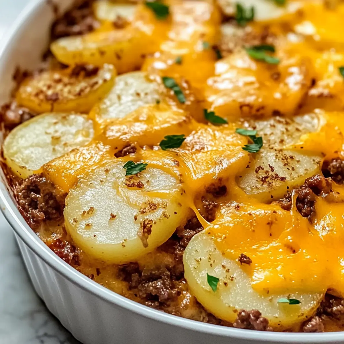 Comforting Goodness: The layers of tender potatoes and melted cheese create a crowd-pleaser that the whole family will enjoy, comparable to a classic French Onion Beef dish!