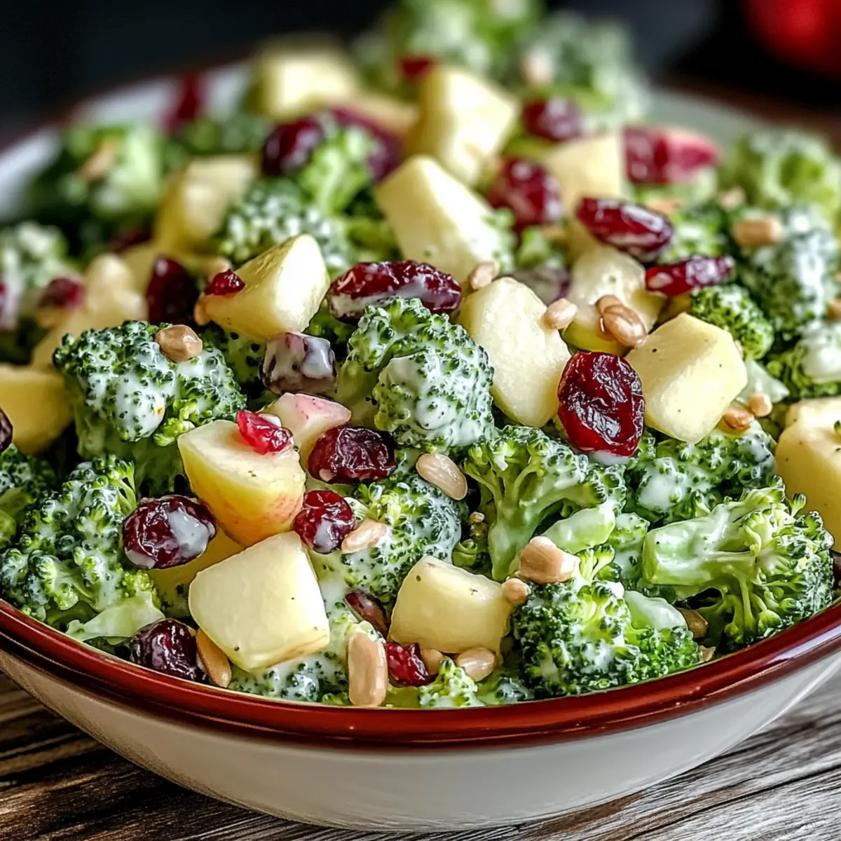As I stood in my kitchen, the vibrant colors of fresh produce caught my eye, instantly lifting my spirits. Enter the Crunchy Honeycrisp Apple Broccoli Salad—a dazzling dish that not only looks beautiful but is also a breeze to whip up in under 15 minutes. This no-cook salad is a fantastic way to nourish your body while keeping things simple, making it a perfect choice for both busy weeknights and laid-back weekends. The delightful combination of crunchy broccoli and sweet Honeycrisp apples, paired with a tangy dressing, creates a flavor explosion that’s truly refreshing. Plus, you can easily customize this salad to suit your dietary preferences, ensuring everyone at the table can enjoy it! Curious about how to bring this salad to life in your kitchen? Let’s dive into the recipe!