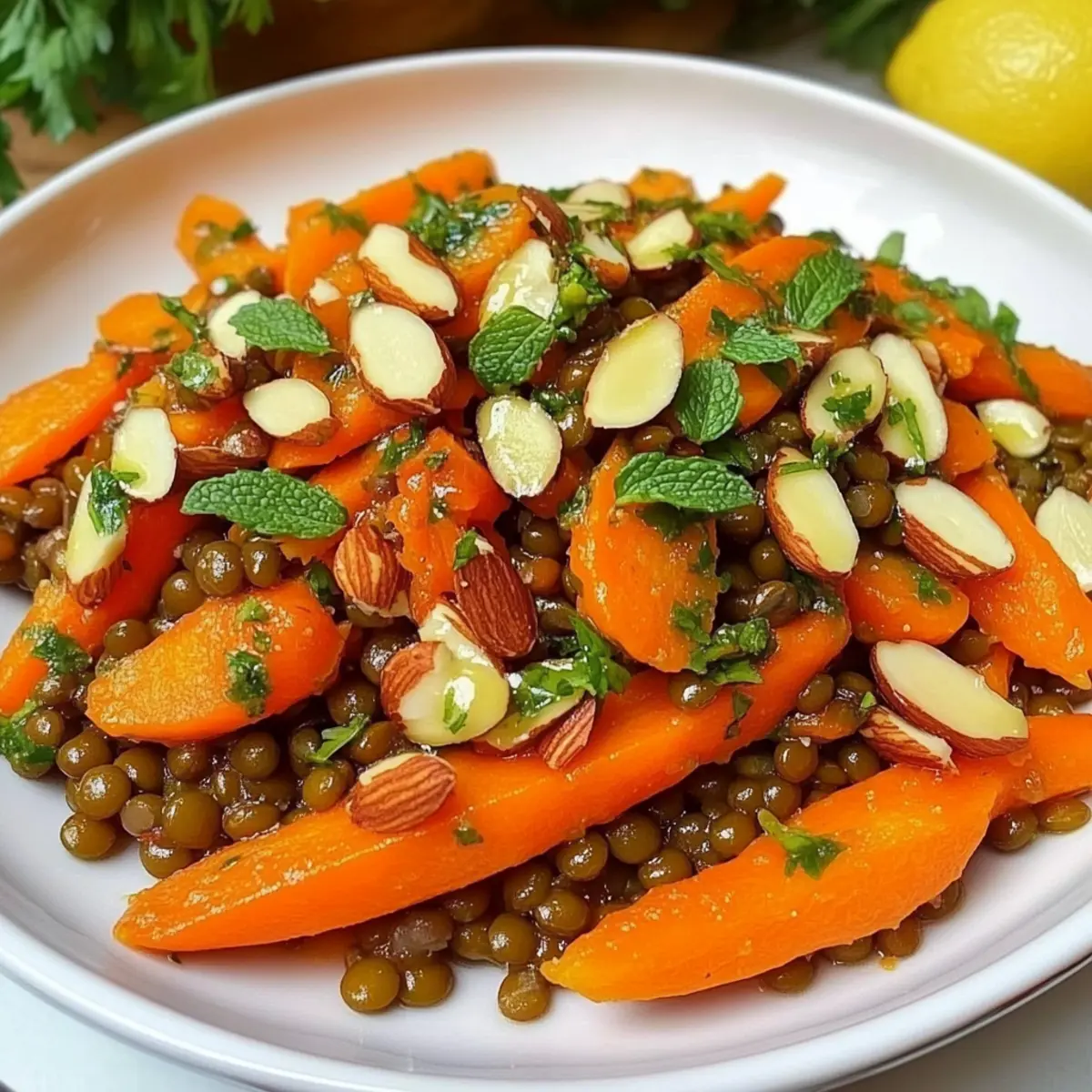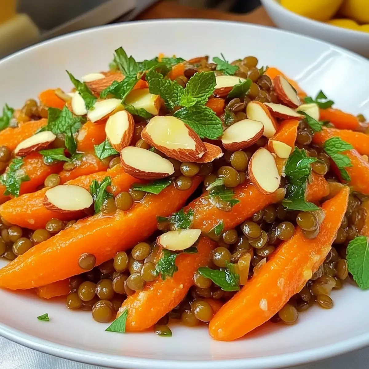 - Toasted Almonds – They add crunch and nuttiness, providing a contrast to the tender carrots and lentils.