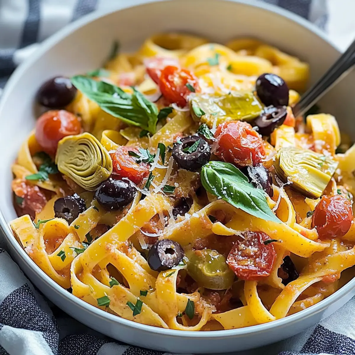 As I stirred the pot, the aroma of garlic and spices wrapped around me like a warm hug, instantly transporting me to the heart of a Mediterranean kitchen. This Quick Gluten-Free Mediterranean One-Pot Pasta is my secret weapon for busy weeknights when I crave something flavorful yet comforting. In just under 30 minutes, you can enjoy a creamy, satisfying meal filled with artichokes, olives, and fire-roasted tomatoes — all while cutting down on cleanup! Not only is this dish a true crowd-pleaser, but it’s also a fantastic way to incorporate gluten-free goodness into your dinner rotation. Ready to delight your senses and keep the stress at bay? Let’s dive into this vibrant recipe together!