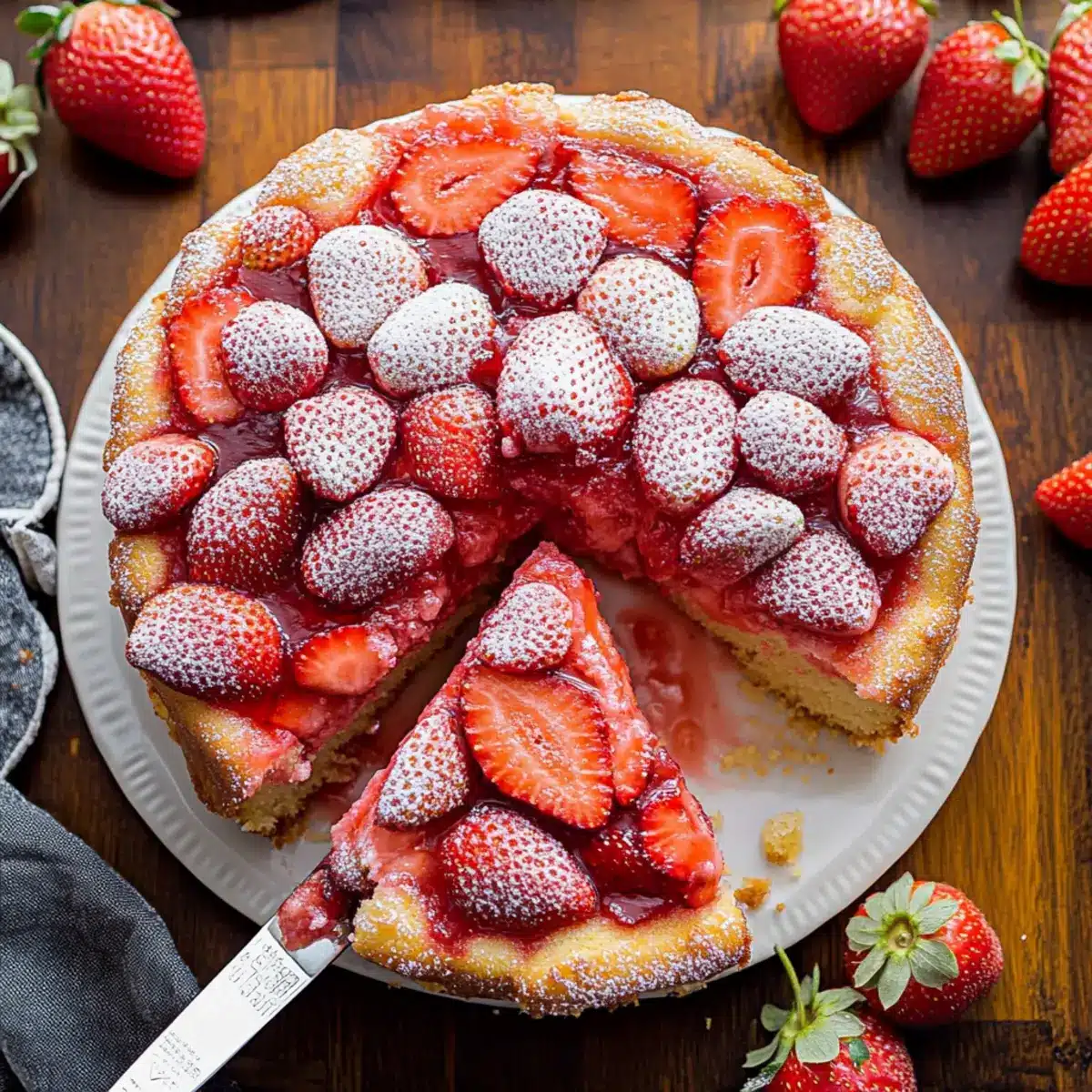 A whiff of summer fills the kitchen as I slice into a beautifully baked cake, revealing a vibrant pink hue dotted with luscious strawberries. This Easy Strawberry Cake with Strawberry Sauce is the perfect way to showcase those sweet, sun-ripened berries that are finally in season. Not only is it quick to whip up, but it lifts spirits and brightens gatherings, making it a fantastic centerpiece for Mother’s Day celebrations or cozy family dinners. The moist crumb and the simple two-ingredient sauce create a delightful pairing that guarantees to satisfy every sweet tooth. Ready to impress your loved ones with a dessert that’s as heartwarming as it is delicious? Let’s dive into this fruity delight together!