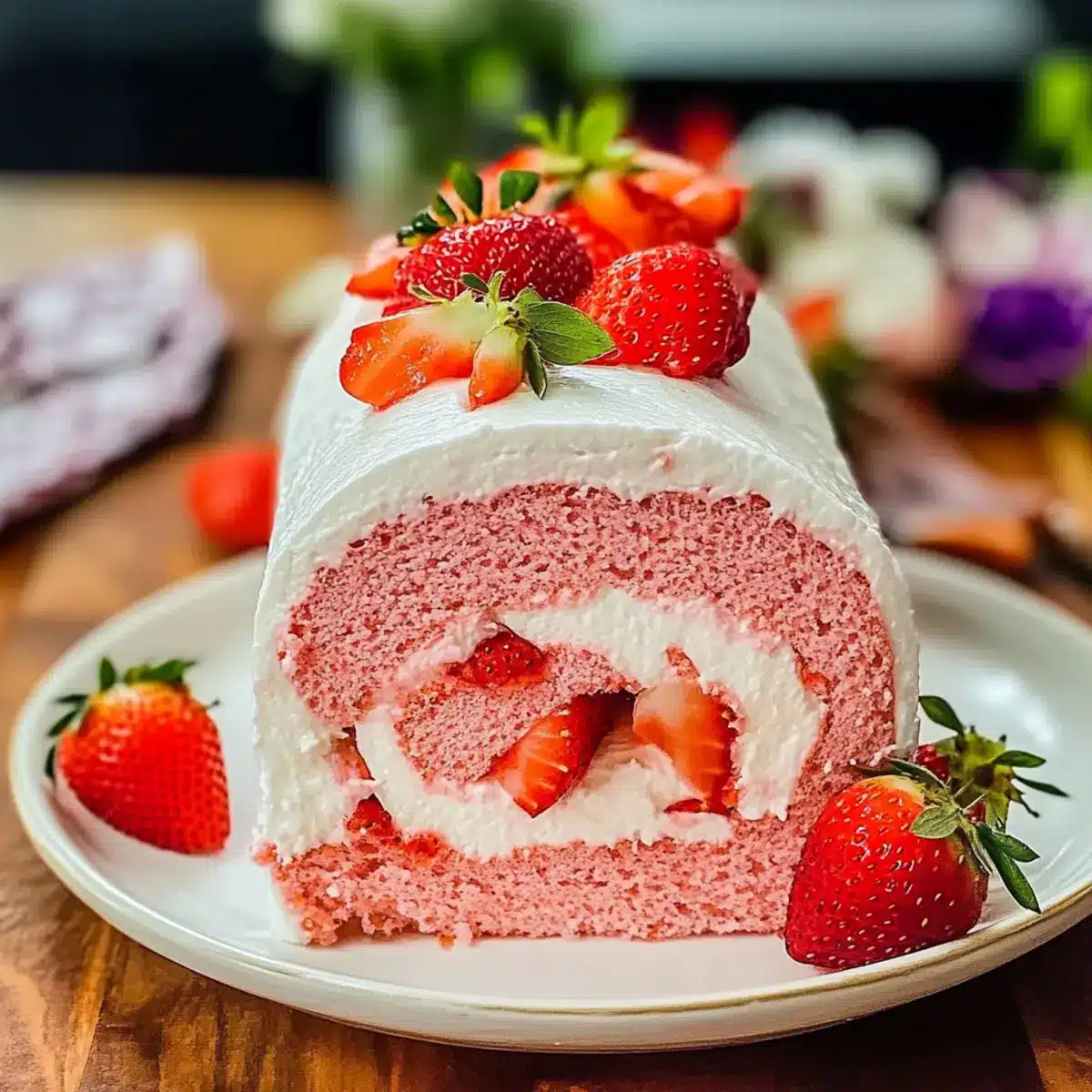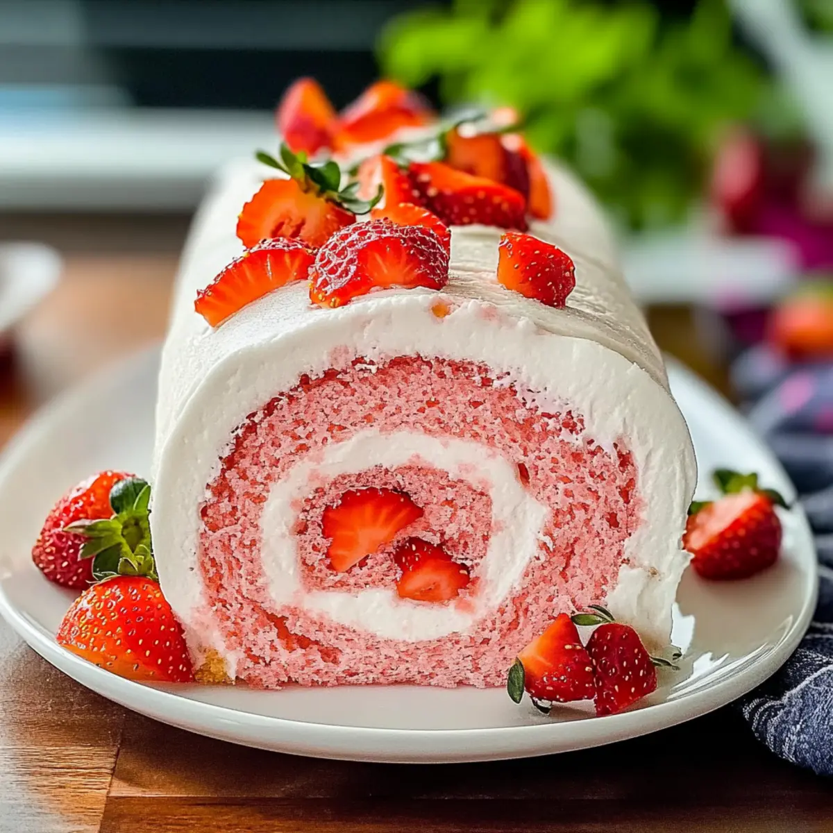 Delightful, eye-catching dessert: This Strawberry Roll Cake is not only refreshing but also a stunning centerpiece for any table.