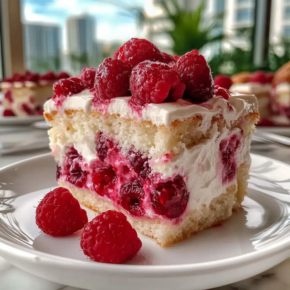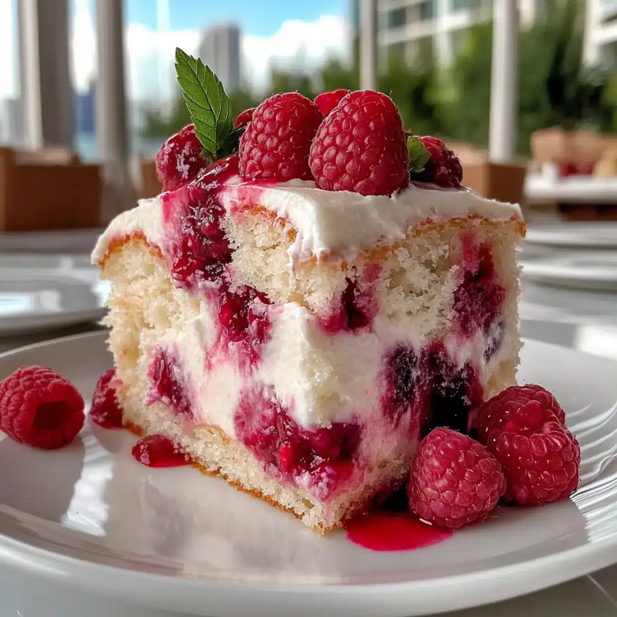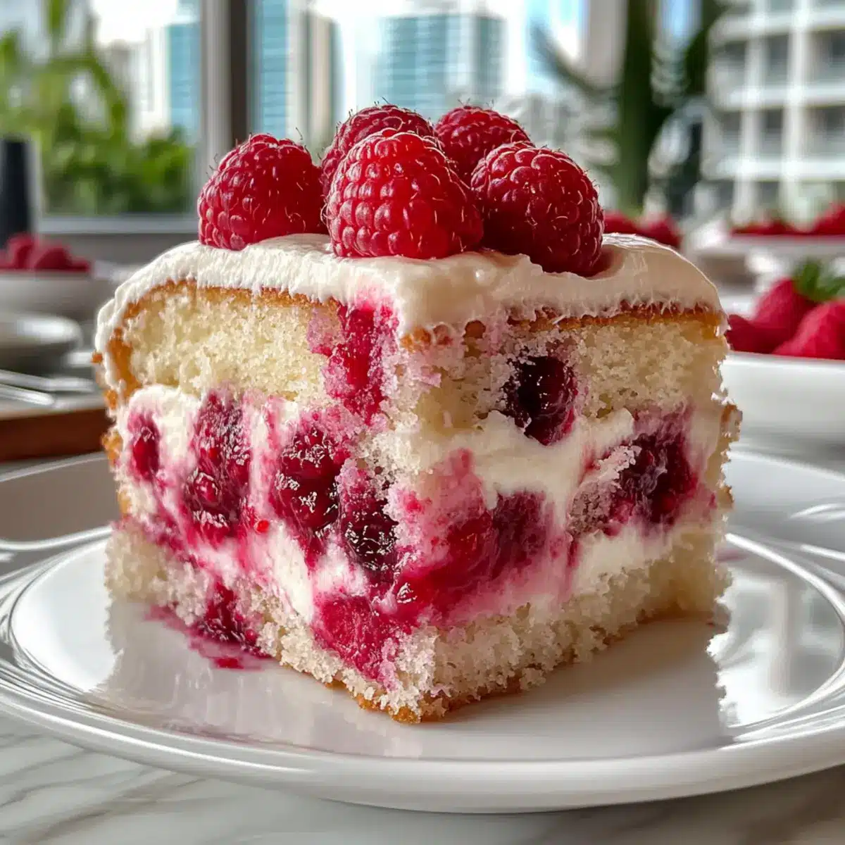 • Fresh raspberries – Brings a burst of bright, tangy flavor that perfectly contrasts the sweet cake.