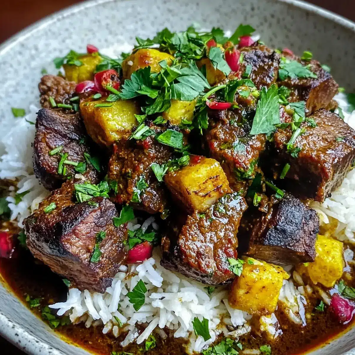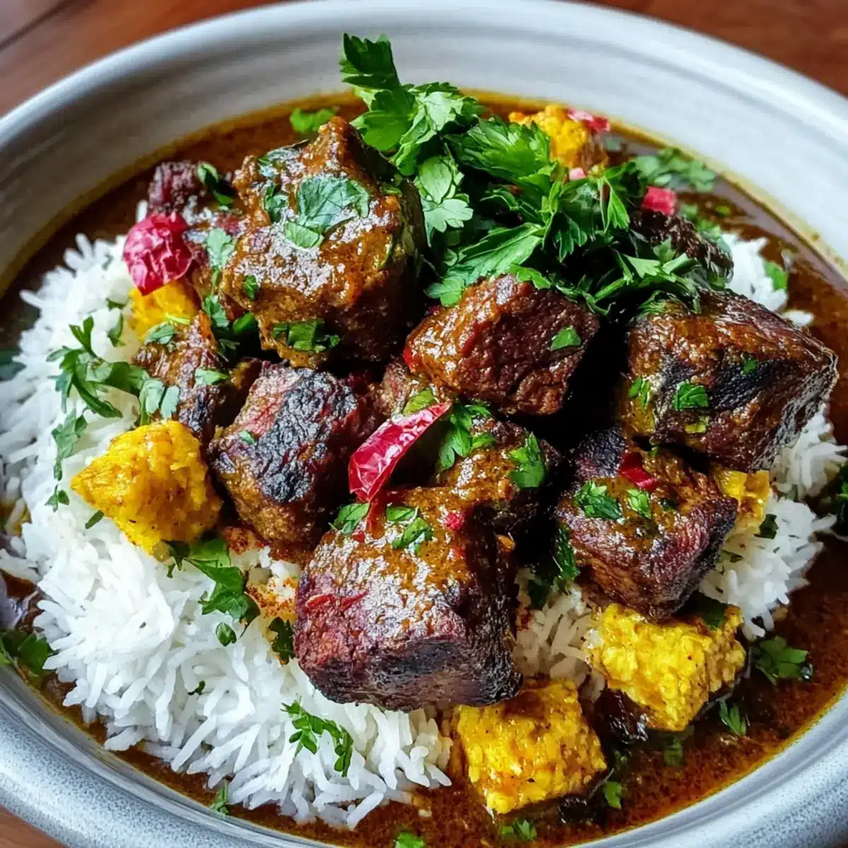Very much so! If you’re cooking for loved ones with dietary restrictions, you can substitute the meat with grilled vegetables or chicken. For those with allergies, keep in mind that pomegranate molasses can be replaced with a simple mix of regular molasses and lemon, but read labels carefully to avoid allergens. Always consult with your guests about their specific needs to ensure everyone can enjoy this hearty dish!