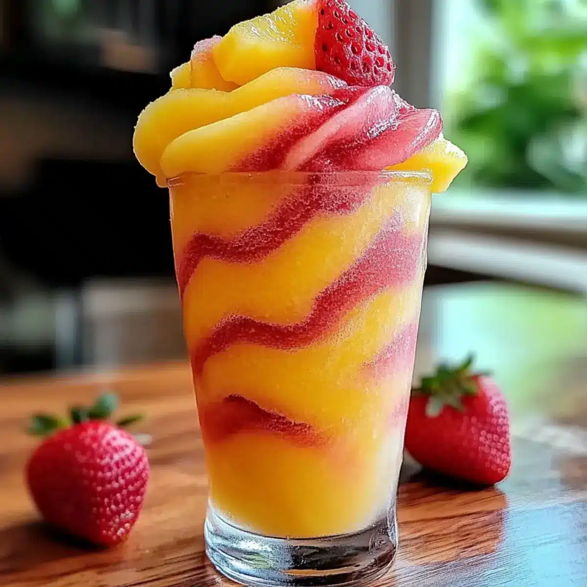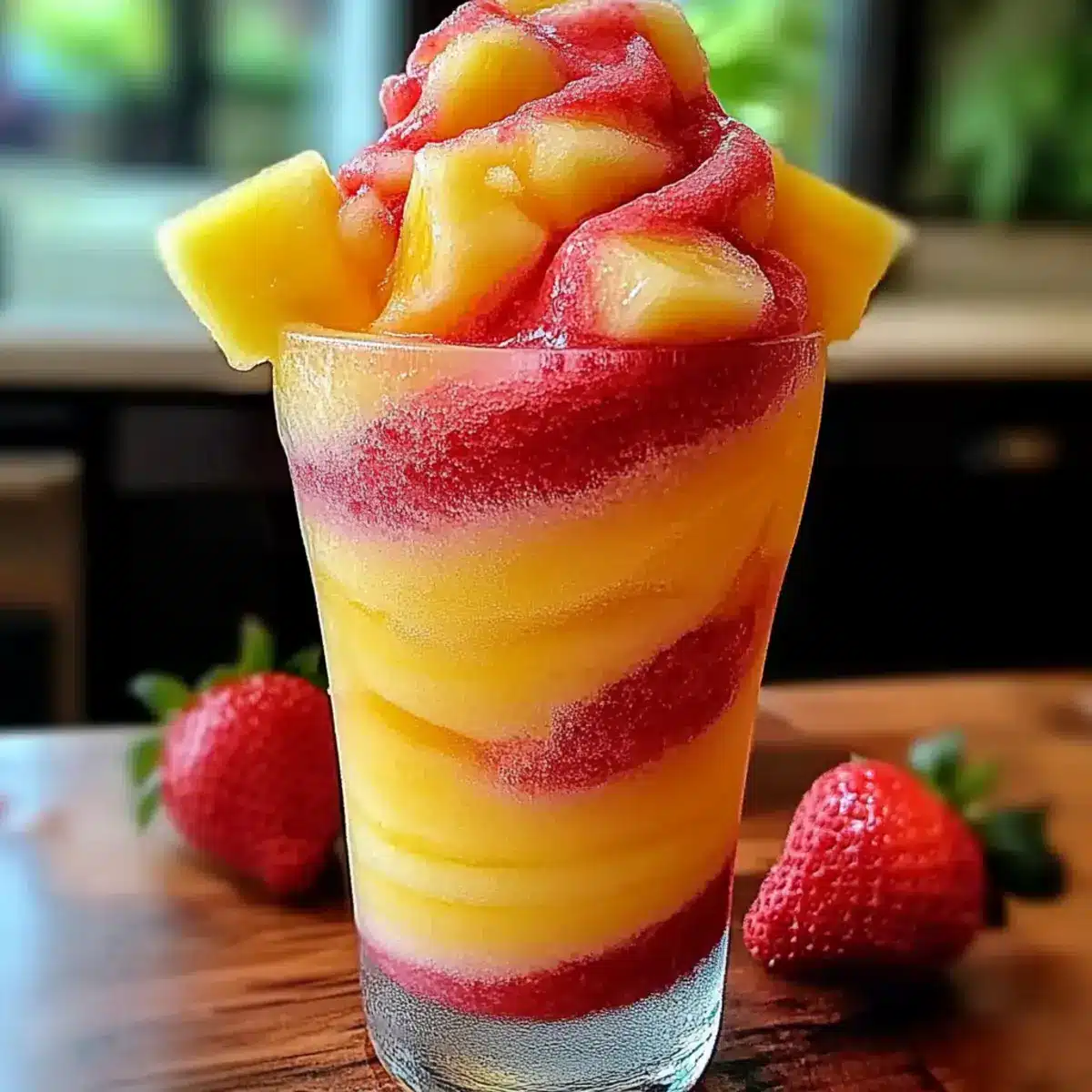 - Assemble Swirled Slushies: Layer spoonfuls of pineapple and strawberry slushes alternately in tall glasses and swirl together.
