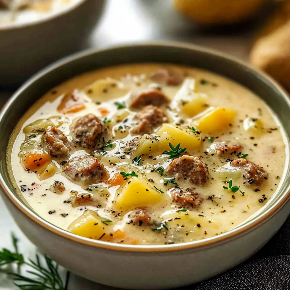 Comforting and fulfilling, this chowder delivers a hearty meal in just one pot—perfect for busy weeknights! Versatile in sausage choices, it can cater to everyone’s taste from Italian to chicken. Simple preparation means you can have a cozy dinner ready without much fuss. Rich, creamy texture warms you from the inside out, while optional garnishes like parsley elevate its appeal. Pair it with slightly sweet Sweet Sausage Muffins for a complete, crowd-pleasing meal!