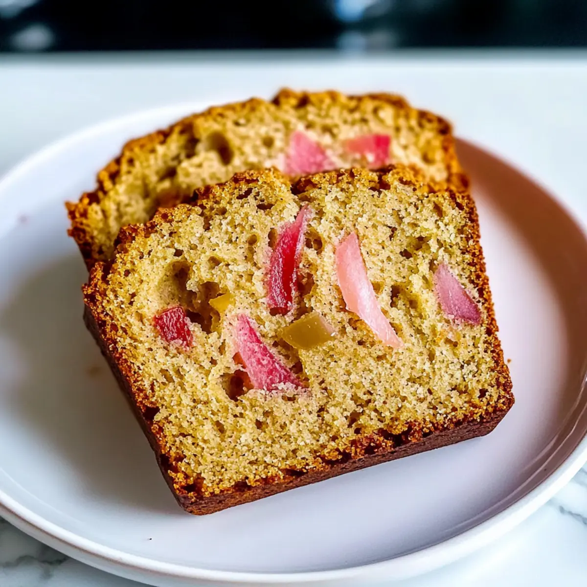 Banana Fusion: Replace some of the chopped rhubarb with ripe mashed banana for a sweet, tropical blend. It creates a tender loaf with a hint of nostalgia.