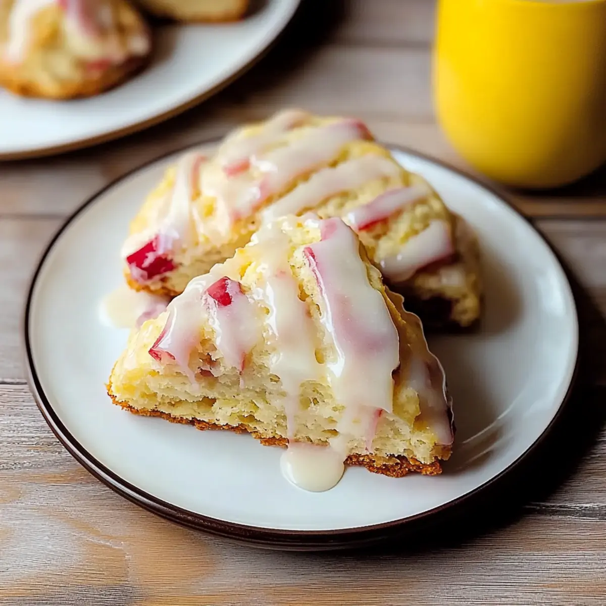 Deliciously Flaky Rhubarb Scones with Vanilla Glaze Recipe