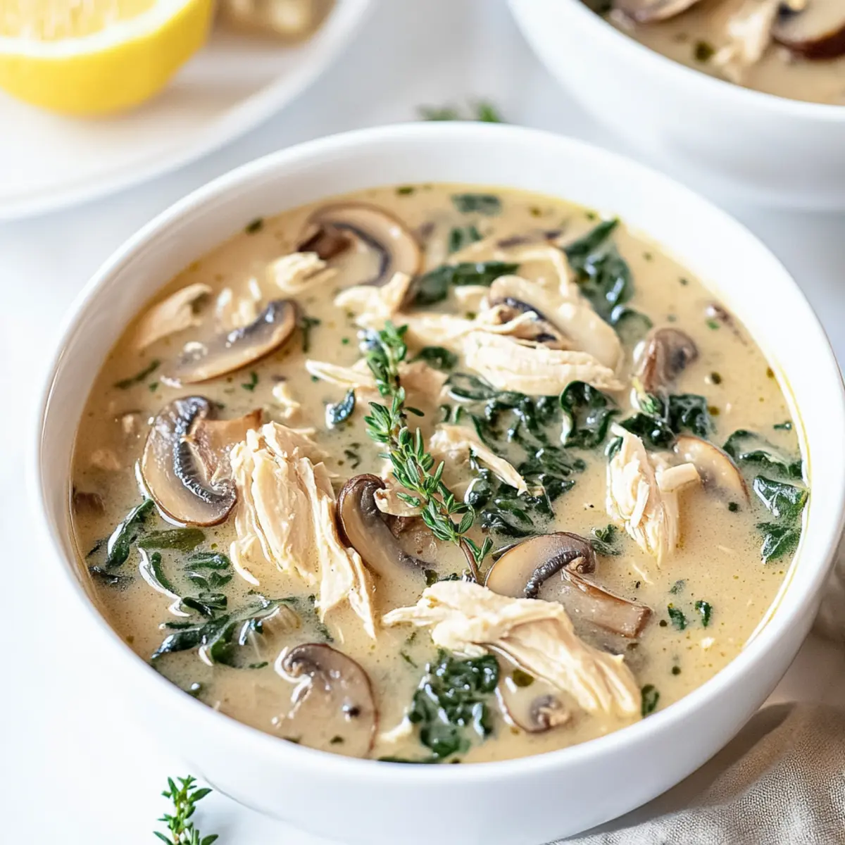 “Comfort can often be found at the bottom of a bowl.” The moment I first spooned a generous helping of Rotisserie Chicken and Mushroom Soup into my favorite mug, I understood this sentiment deeply. This dish transforms leftover rotisserie chicken into a warm embrace of creamy deliciousness that’s not only a time-saver but also an incredible crowd-pleaser for any occasion. As the fragrant garlic and thyme mingle with tender chicken and fresh spinach, every swirl hints at comfort food at its finest. Plus, for those who prefer a vegetarian twist, swapping chicken for firm tofu keeps the warmth intact while accommodating different dietary preferences. Curious about how a few simple ingredients can create such an inviting flavor? Let’s dive into making this heartwarming soup together!