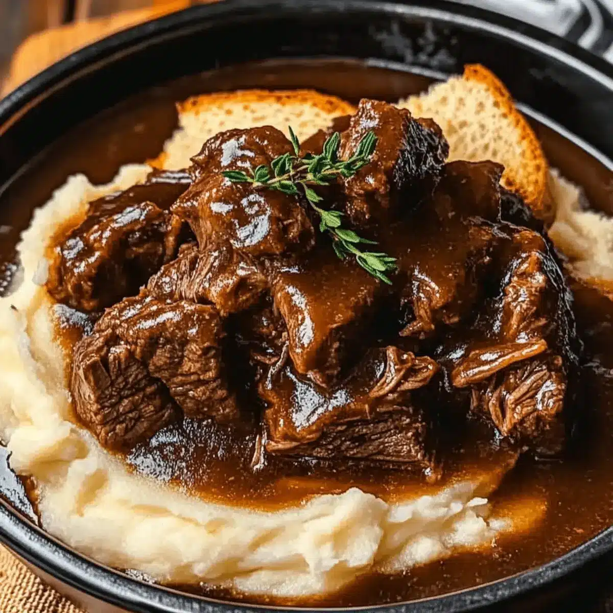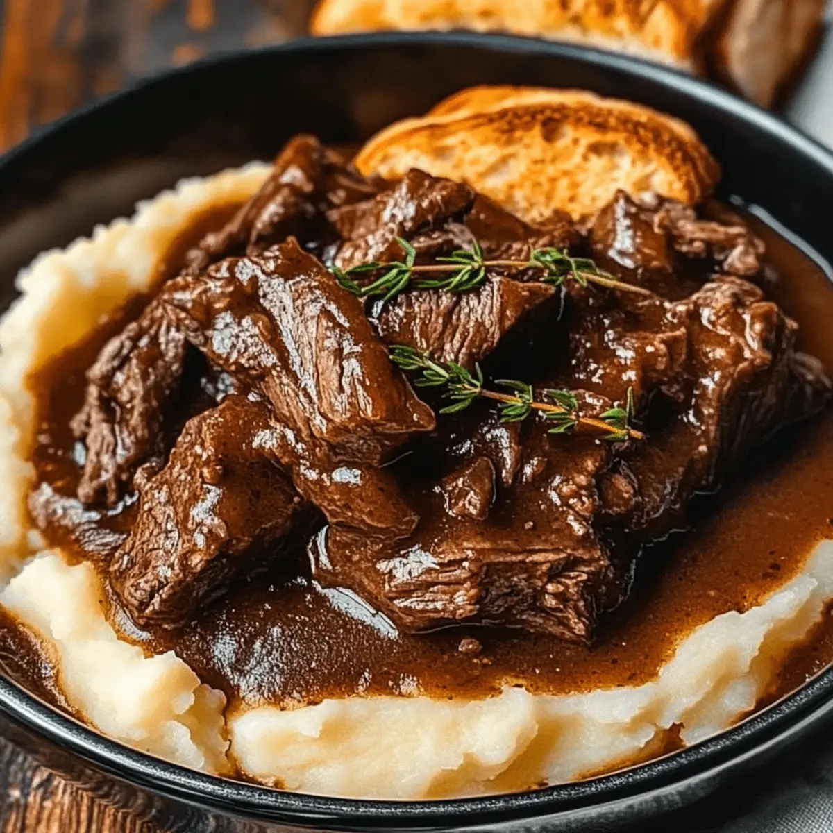 - Serve the Dish: Layer bread with mashed potatoes, add shredded beef, and ladle gravy over the top.