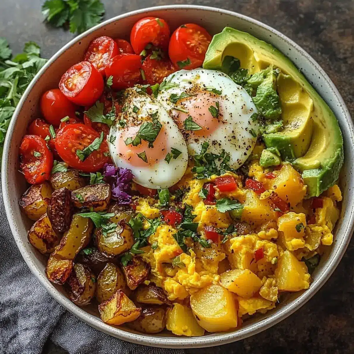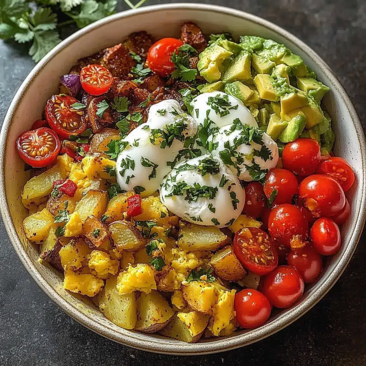 - Vegan Option: Substitute scrambled eggs with silken tofu, crumbled for a creamy texture, making this bowl entirely plant-based.