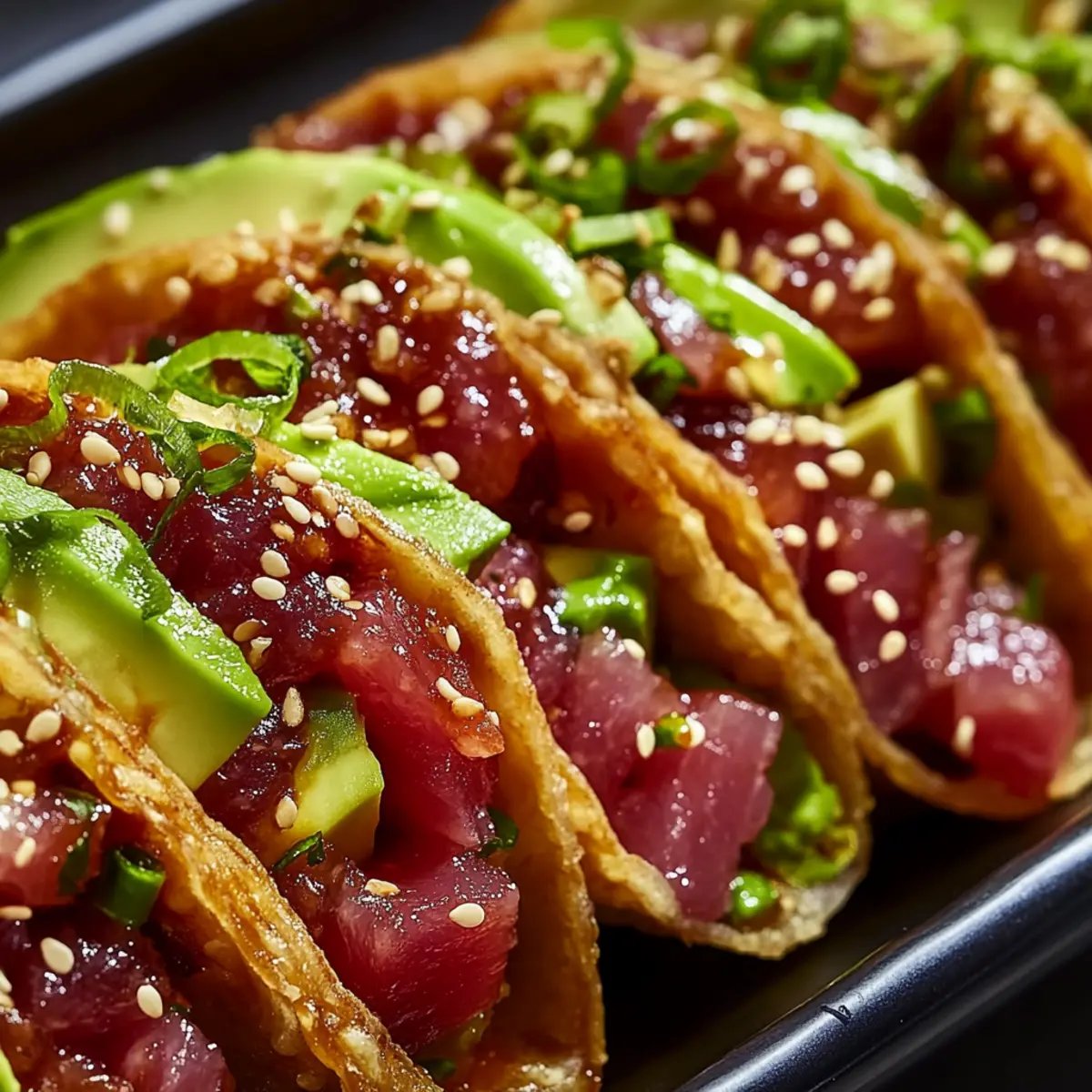 “Isn’t it amazing how something as simple as a taco can evoke flavors from across the globe? My Spicy Tuna Tartare Wonton Tacos Recipe effortlessly bridges the gap between Asian-Fusion and beloved comfort food. Imagine creamy, sushi-grade tuna tucked into a crispy wonton shell, where each bite delivers a delightful crunch paired with a spicy kick. This dish is not only a fun and customizable appetizer for gatherings but also offers a healthier twist—just opt for baked shells to keep things light. Whether you’re a seasoned home chef or just starting your culinary journey, these tacos will impress your guests and ignite your passion for cooking. How will you spice up your next gathering with this vibrant dish?”