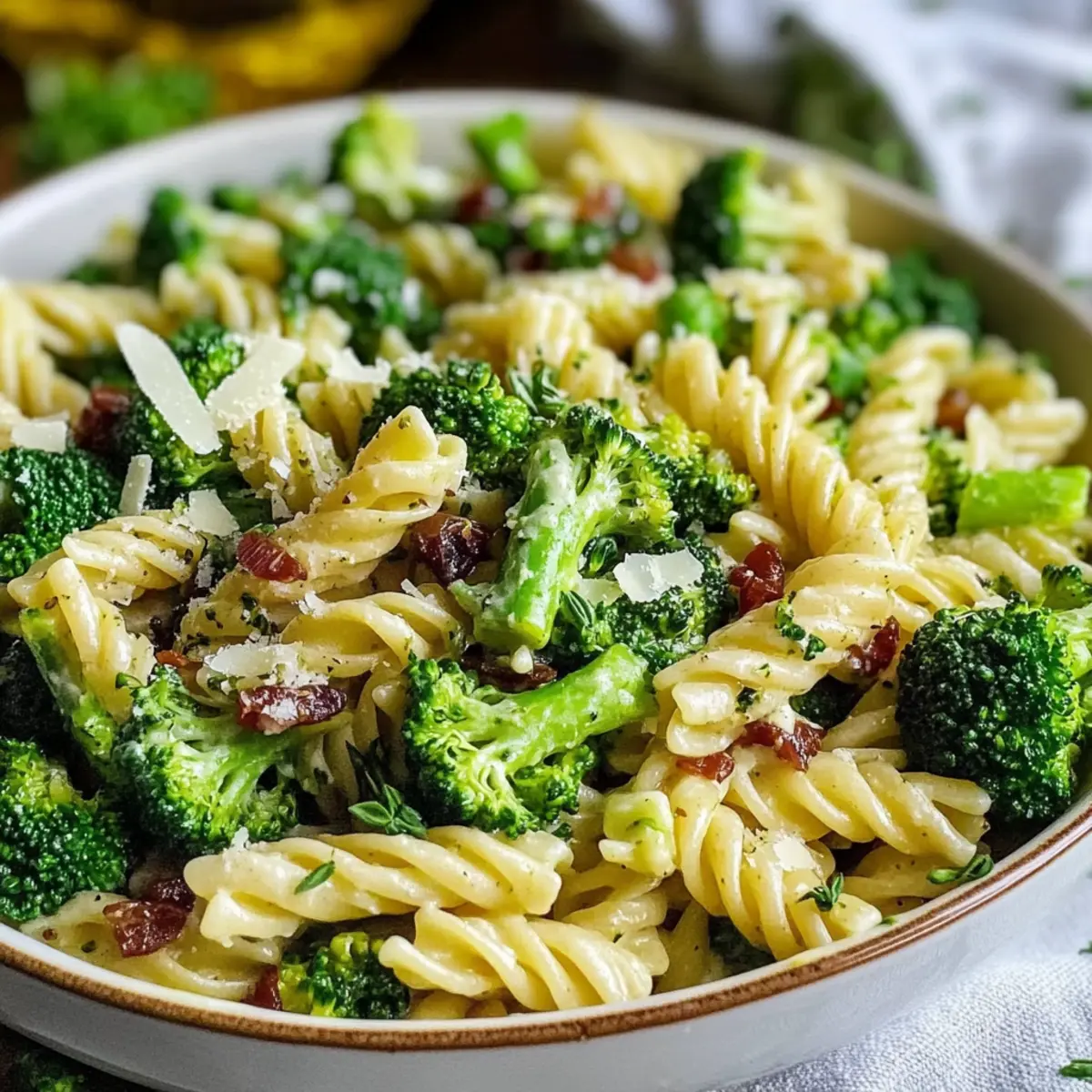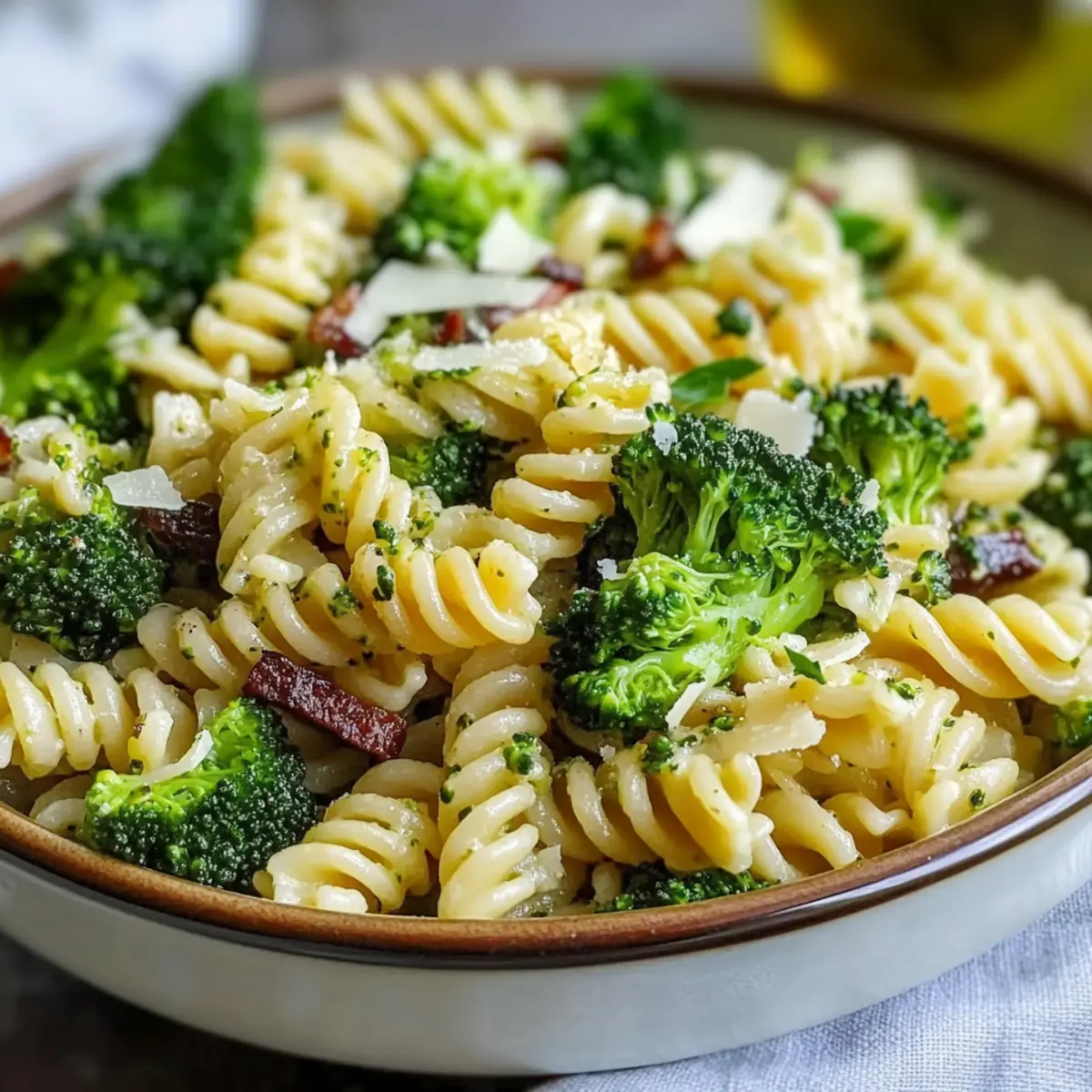 - Combine Ingredients: In a bowl, mix pasta and broccoli, pour vinaigrette, and toss gently.