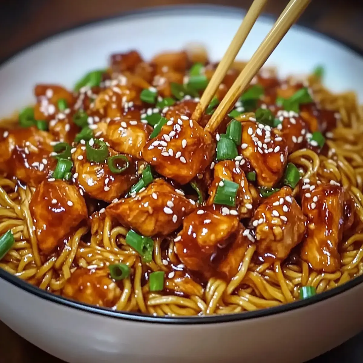 Sticky Garlic Chicken Noodles for a Simple Dinner Delight