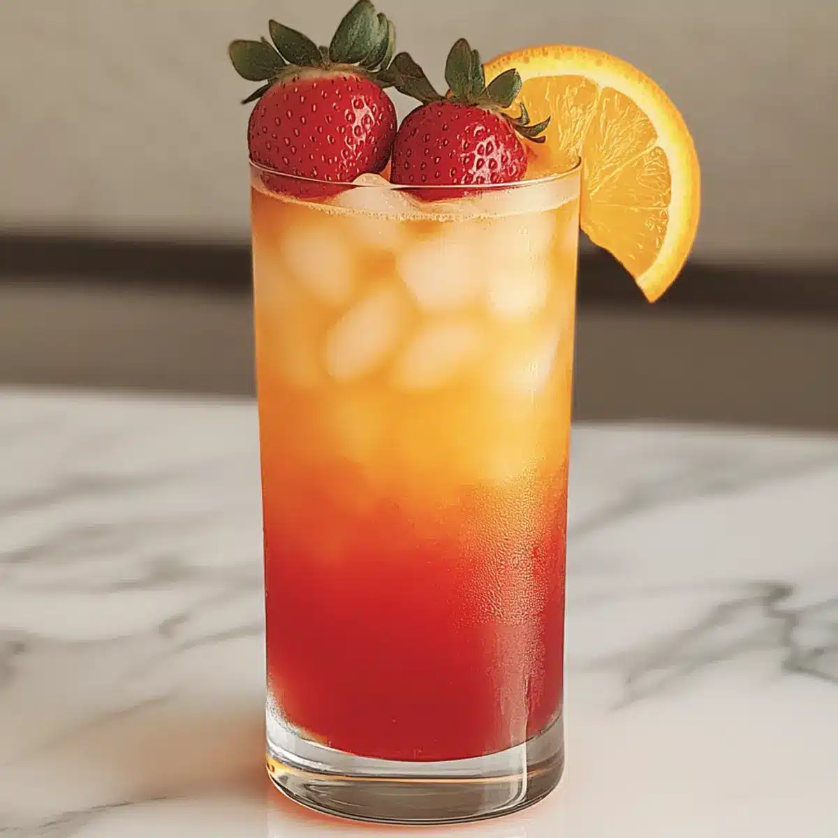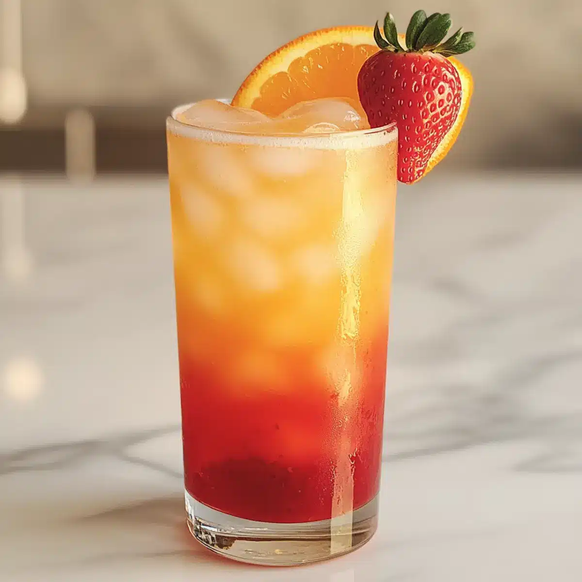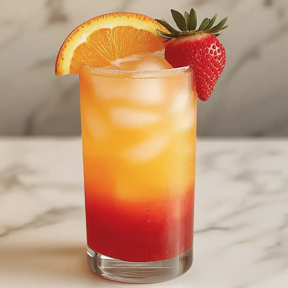 For a stunning finish, garnish your Strawberry Sunrise Mocktail with a fresh strawberry or a slice of orange. Simply place the garnish on the rim of the glass or float it delicately on top. This final touch adds a vibrant visual and hints at the fruity flavors awaiting you in this refreshing non-alcoholic drink.