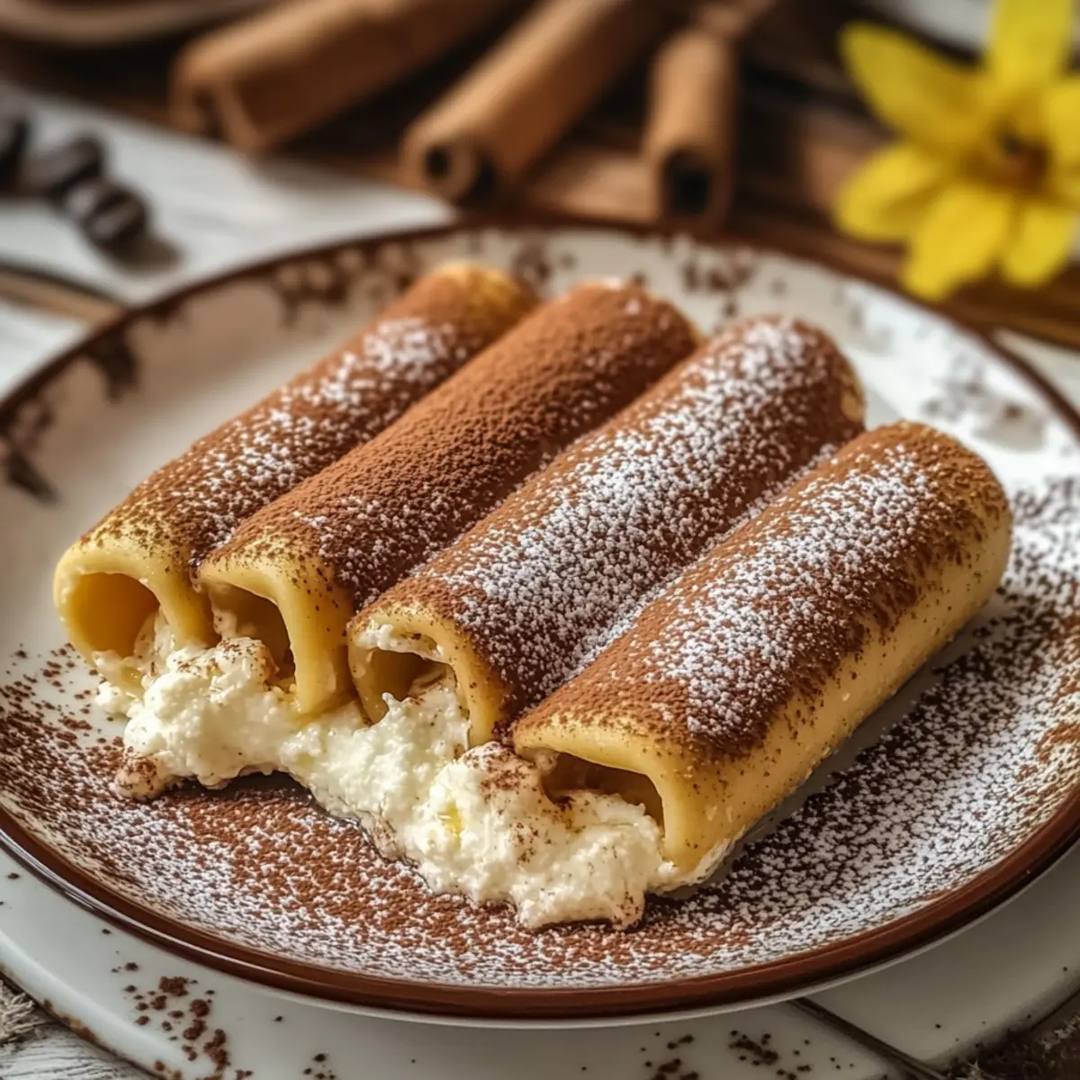 Reheating: If desired, warm your Sweet Cannelloni Tiramisu in a microwave for a few seconds but serve immediately after. This brings back that delightful balance of crunchy and creamy textures.