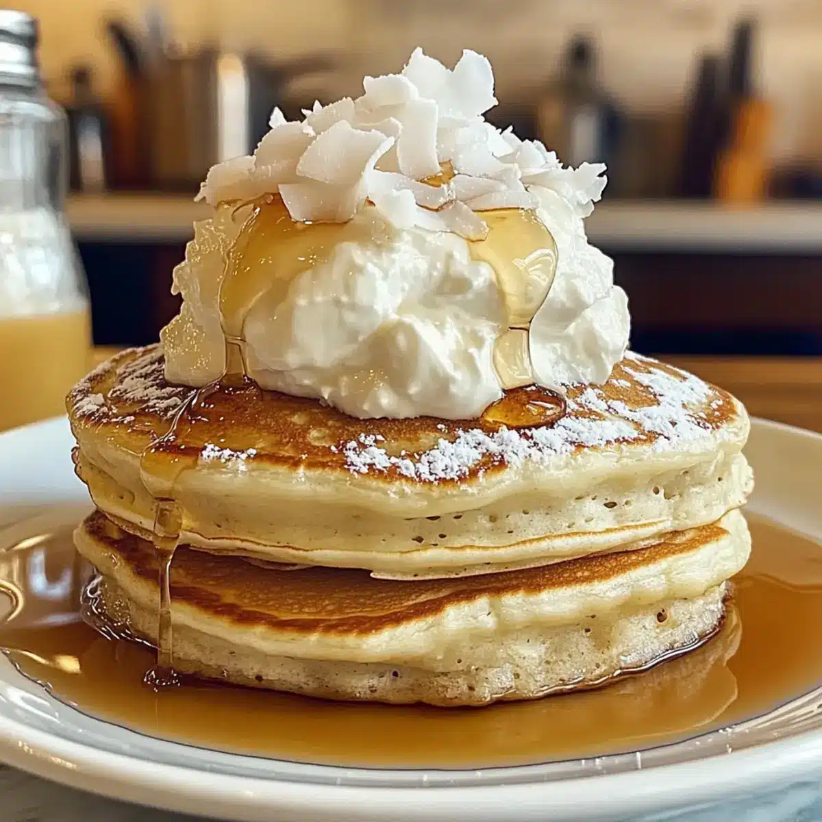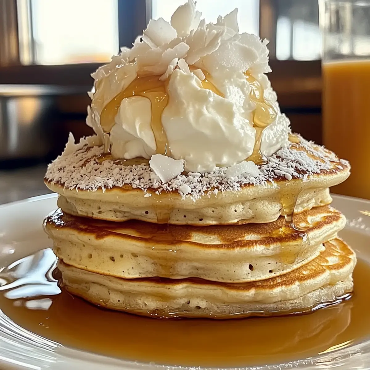 Coconut Whipped Cream: For a truly decadent experience, serve pancakes with a dollop of coconut whipped cream. It’s an extra layer of coconut flavor that will have you dreaming of sandy beaches.