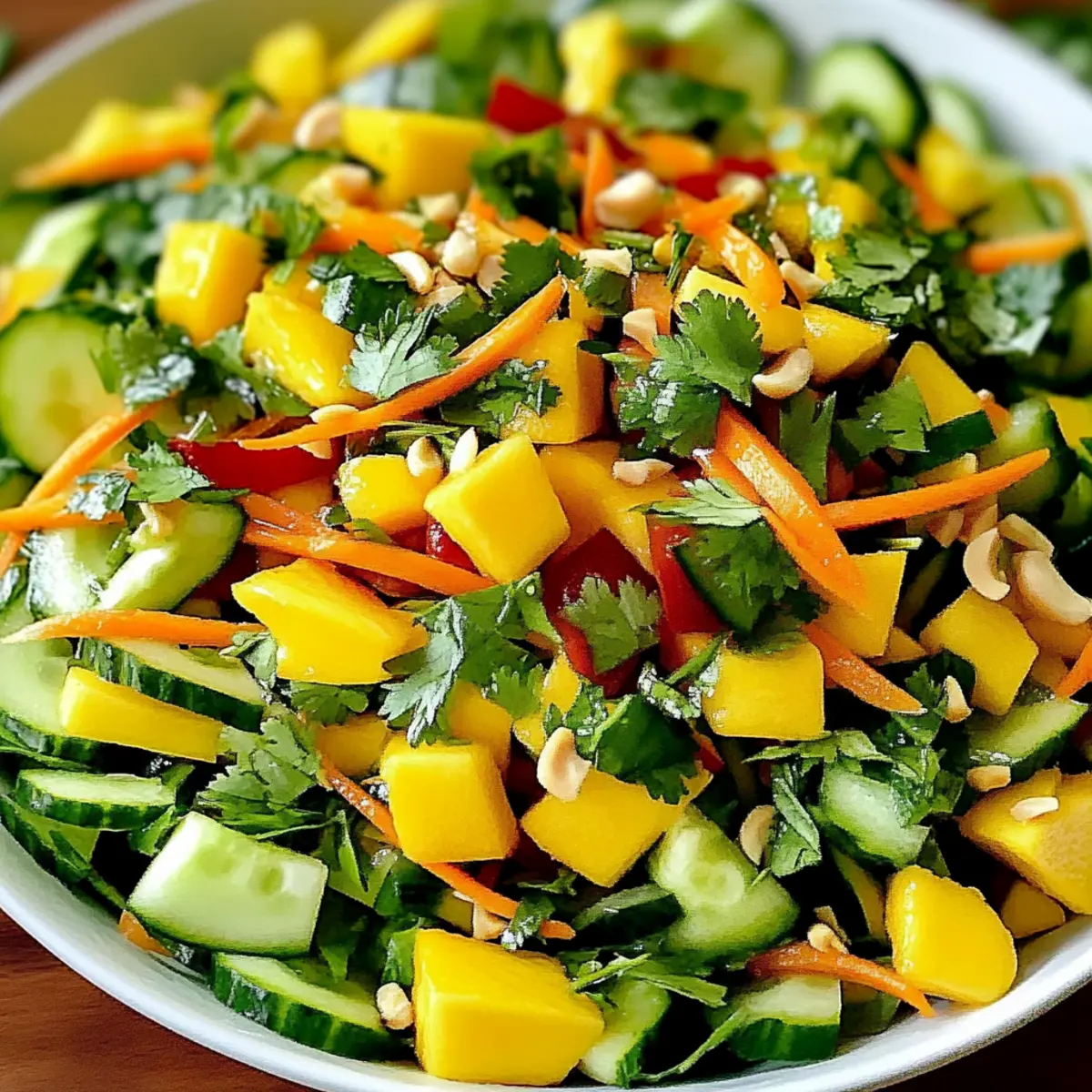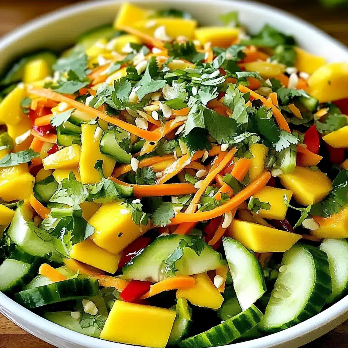 The vibrant colors of street markets in Thailand always stir my senses, reminding me of the refreshing dishes that embody true comfort. Today, I’m thrilled to share my take on a Fresh and Zesty Thai Mango Salad. This delightful recipe combines ripe mangoes, crisp vegetables, and fragrant herbs, creating a perfect balance of sweet, savory, and tangy flavors. Not only is it super quick to whip up, making it an ideal choice for busy weeknights, but it also serves as a light, satisfying option that’s both vegan and gluten-free. Whether enjoyed on its own or as a colorful side dish to complement grilled meats, this salad radiates joy and the essence of vibrant summertime dining. Curious to discover how a simple mix can transport your taste buds to the sunny shores of Thailand? Let’s dive into the recipe!