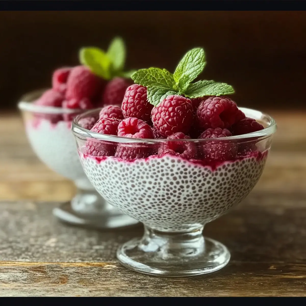 - Spoon the pudding into bowls or jars and top with fresh raspberries and mint leaves before serving.